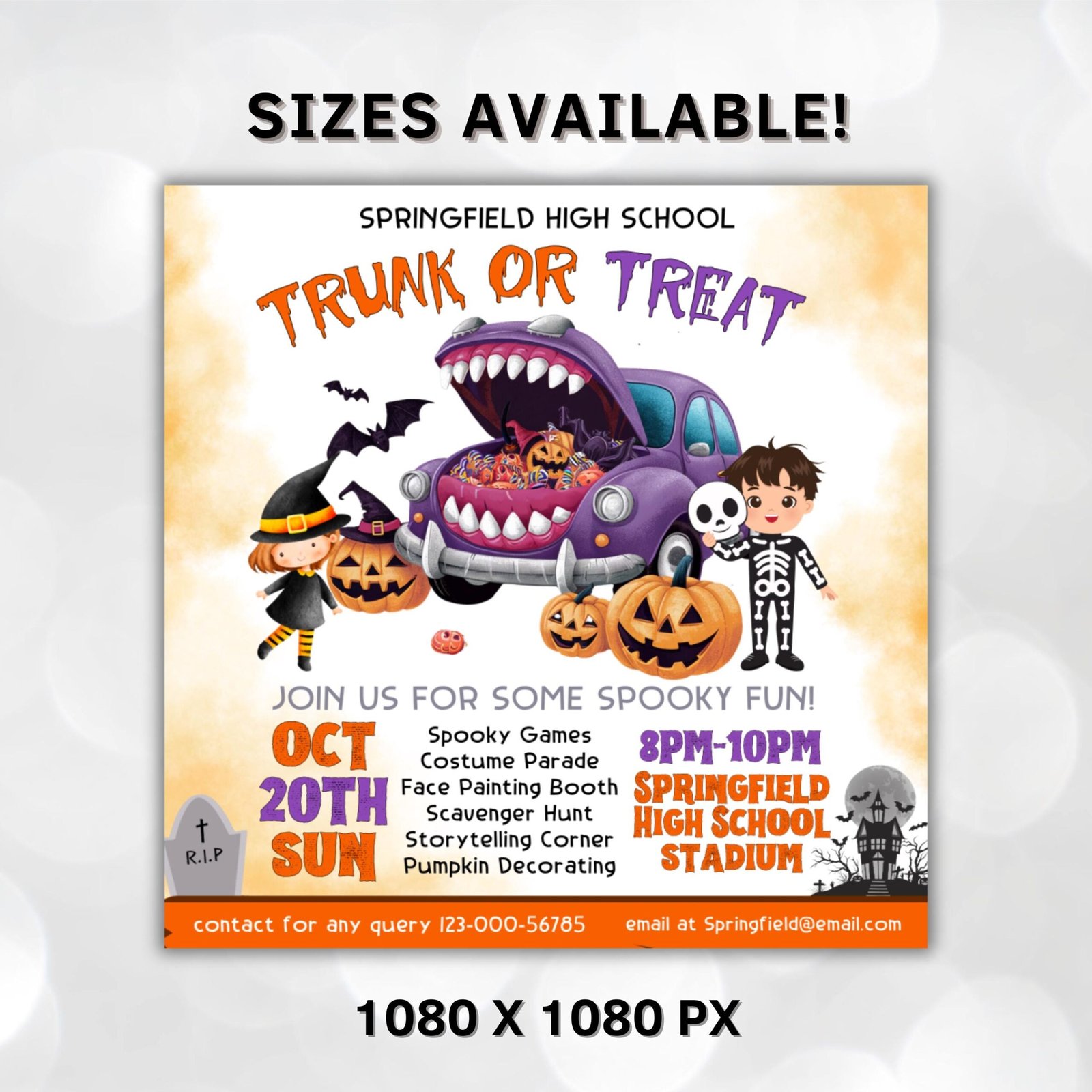 Make your Halloween event stand out with this amazing Trunk or Treat Flyer! It’s the perfect way to get guests excited and ready to celebrate. With its one-of-a-kind design and