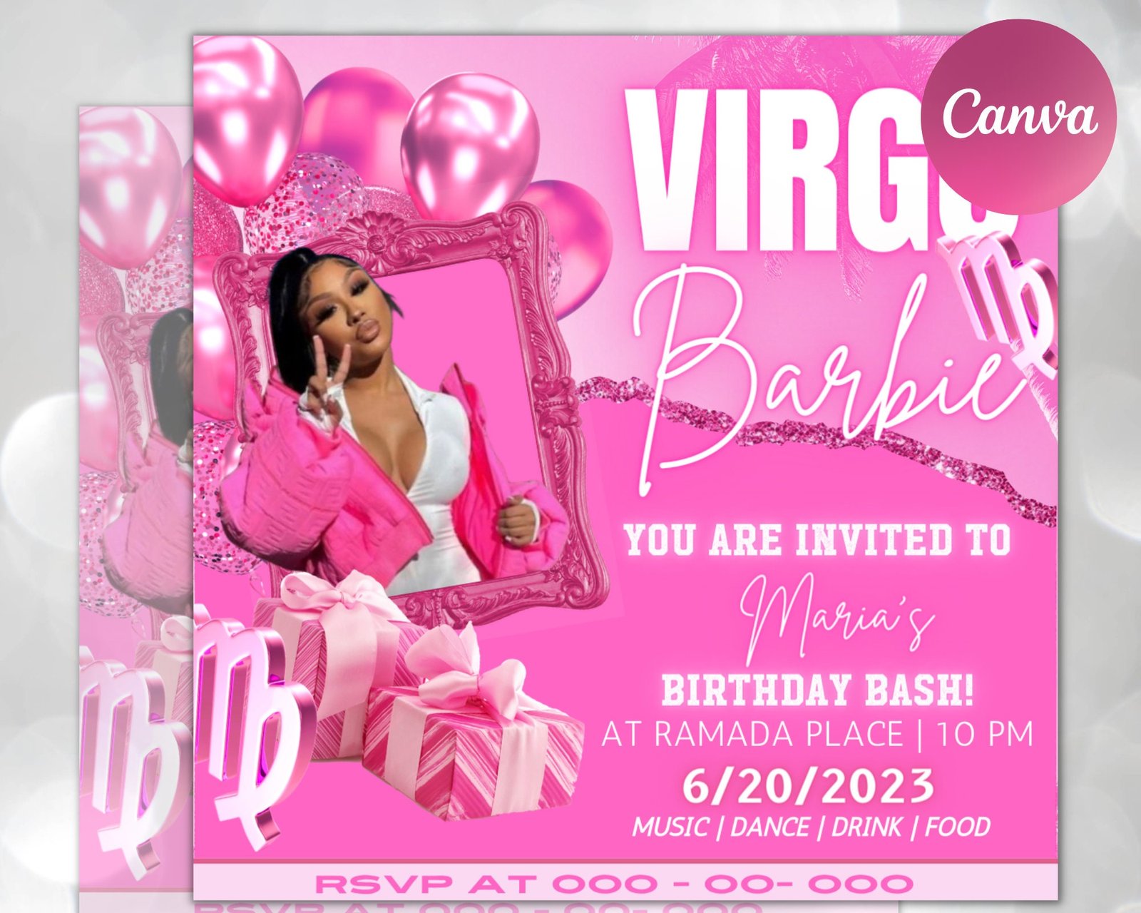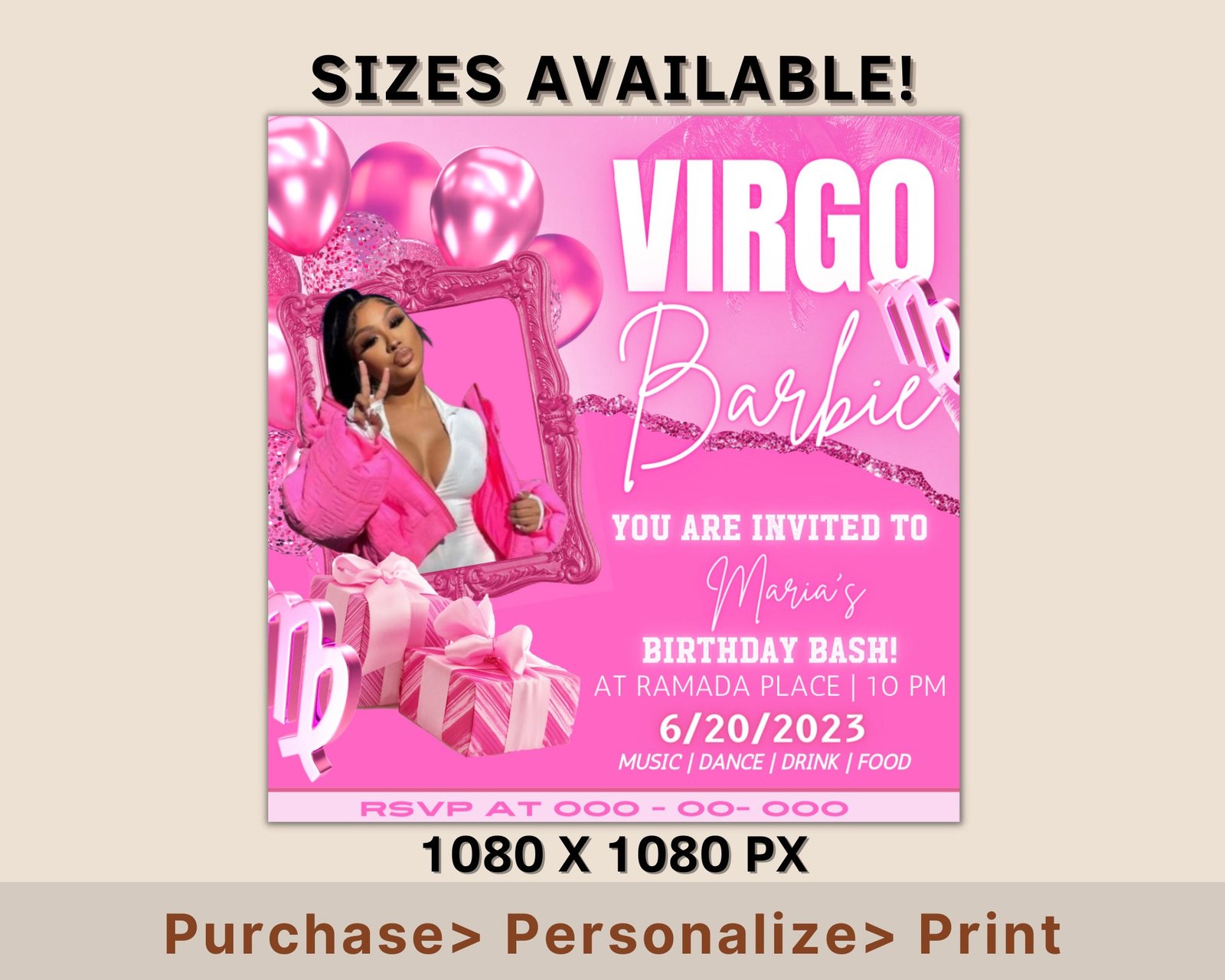 Editable Virgo Birthday Flyer, Birthday Template, Birthday Girl, Pink Birthday Flyer, Virgo Season, Party Flyer, Celebration Flyer