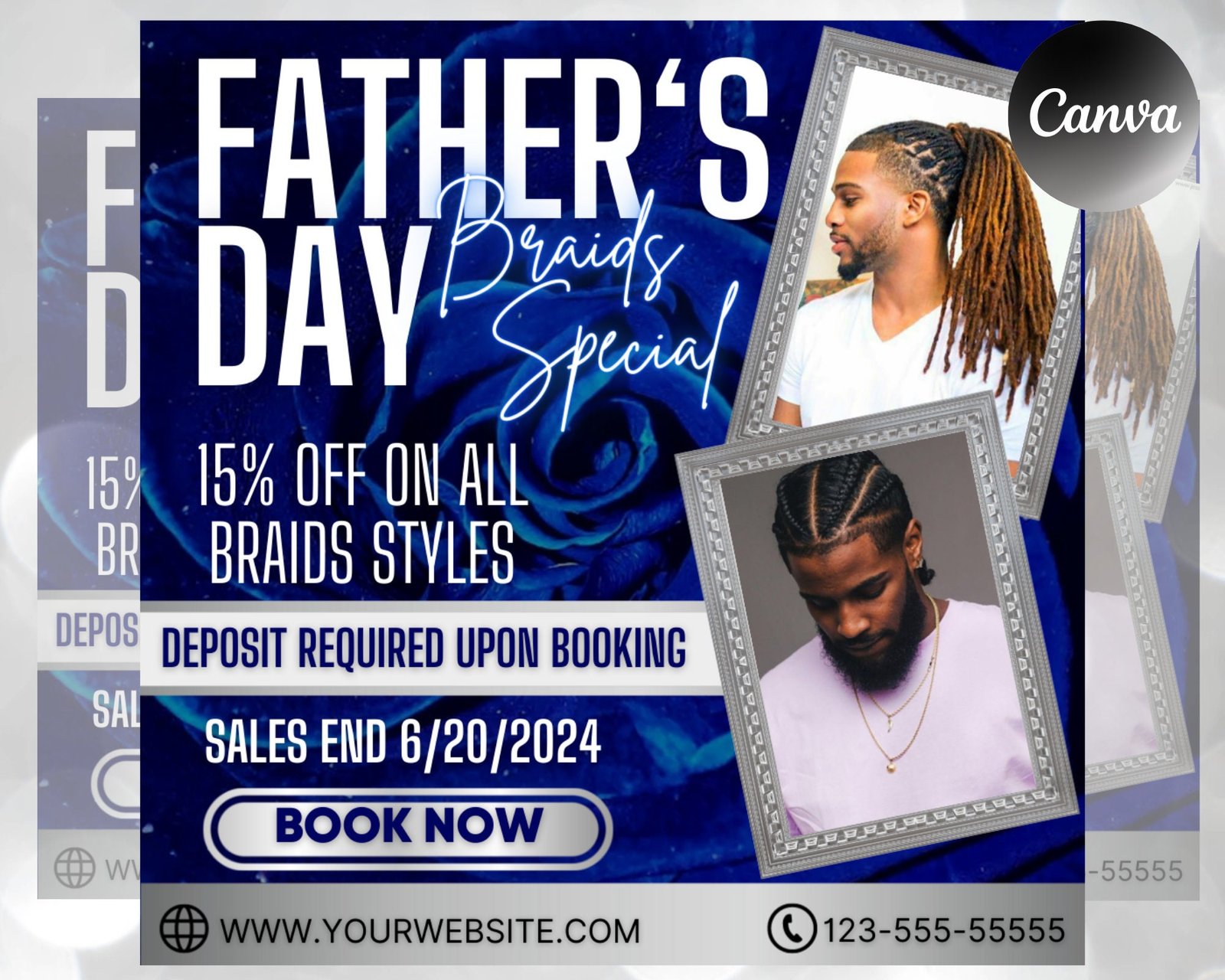 Father’s day sale flyer, hair nails lashes mua flyer, wig install flyer, book now flyer, boutique flyer, social media flyer, canva template