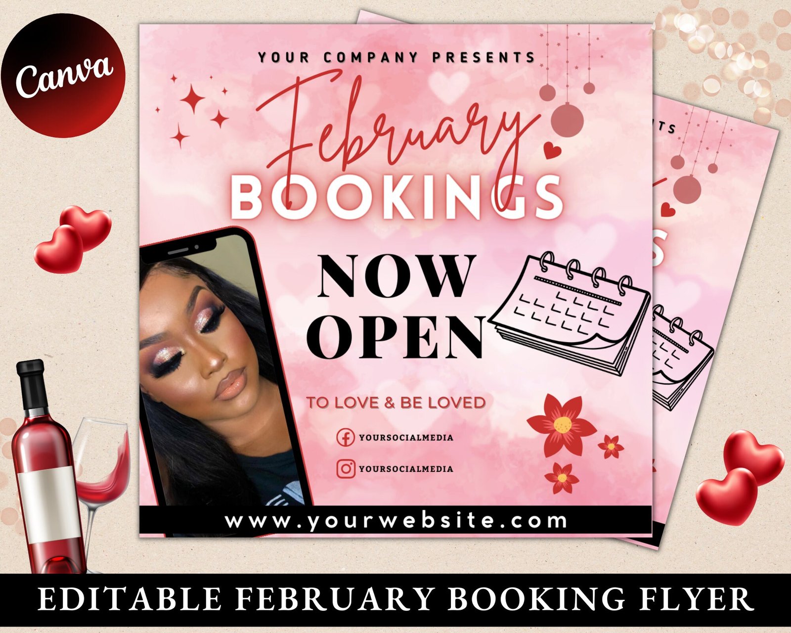 February bookings flyer: use this amazing february bookings flyer for branding/marketing your busine…