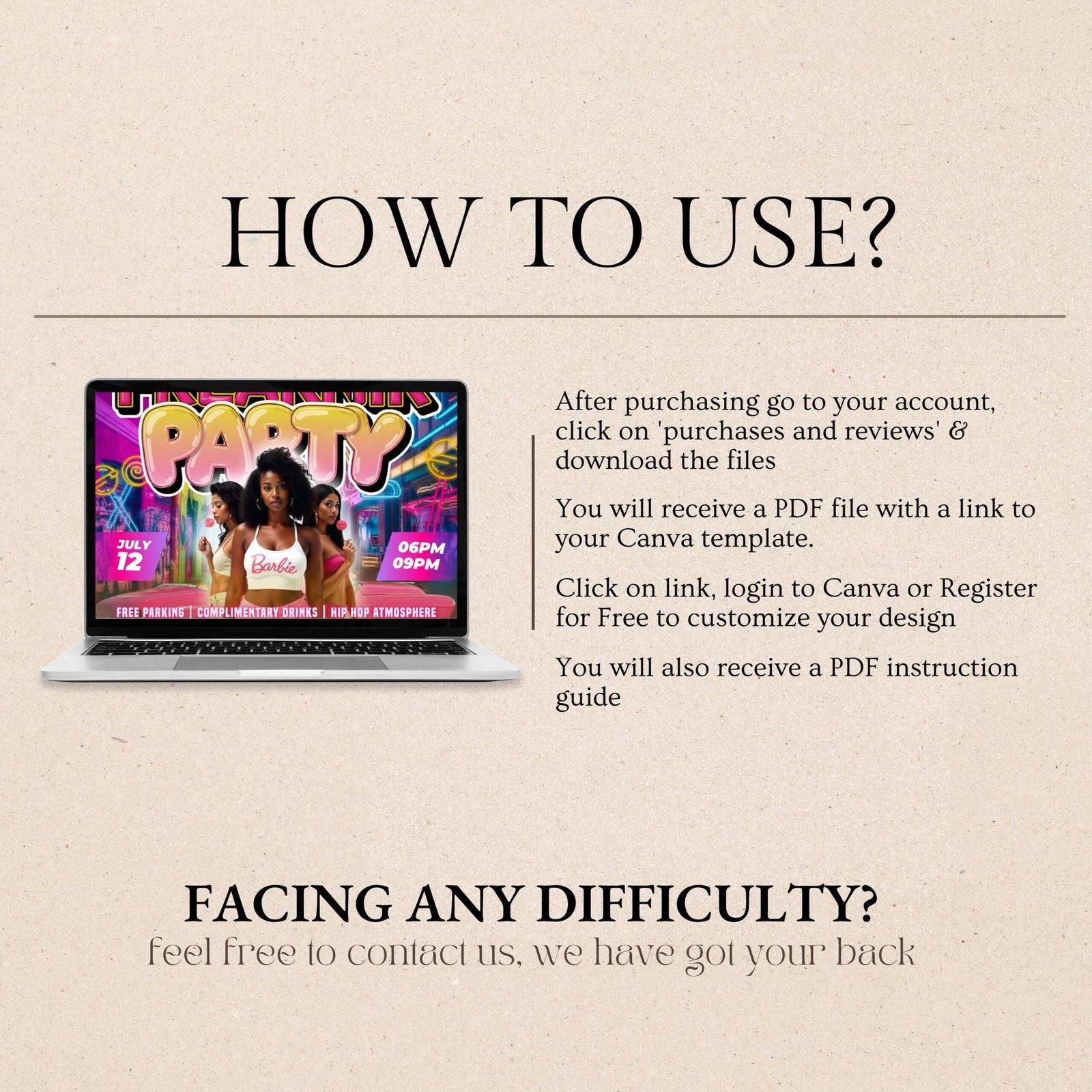 Purchase & Access – After payment, you’ll receive an email with a link to your editable design (sent to your Etsy-registered email).