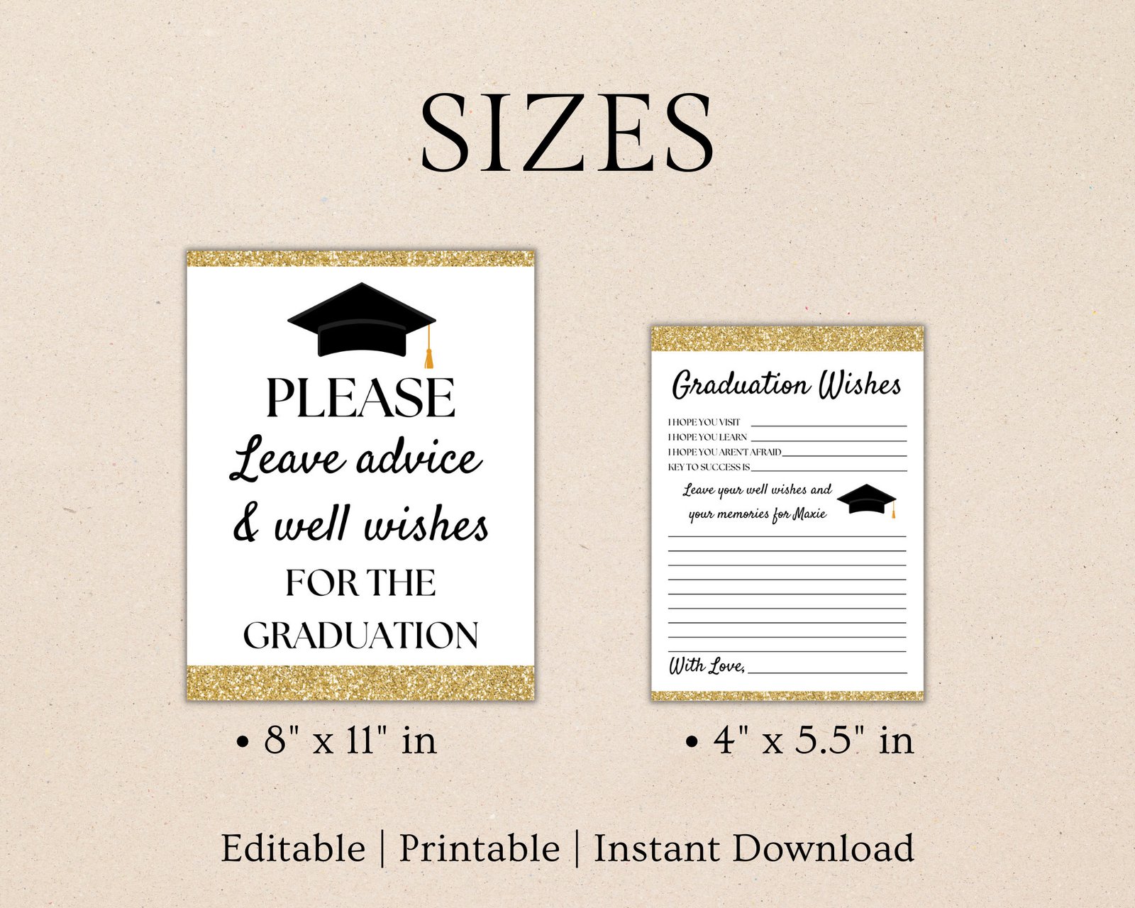 Graduation Advice Cards and Sign, Printable & Editable Graduation Advice Cards, Graduation Wishes, Size: 8.5″ x 11″ Sign, 5.5″ x 4″ Cards