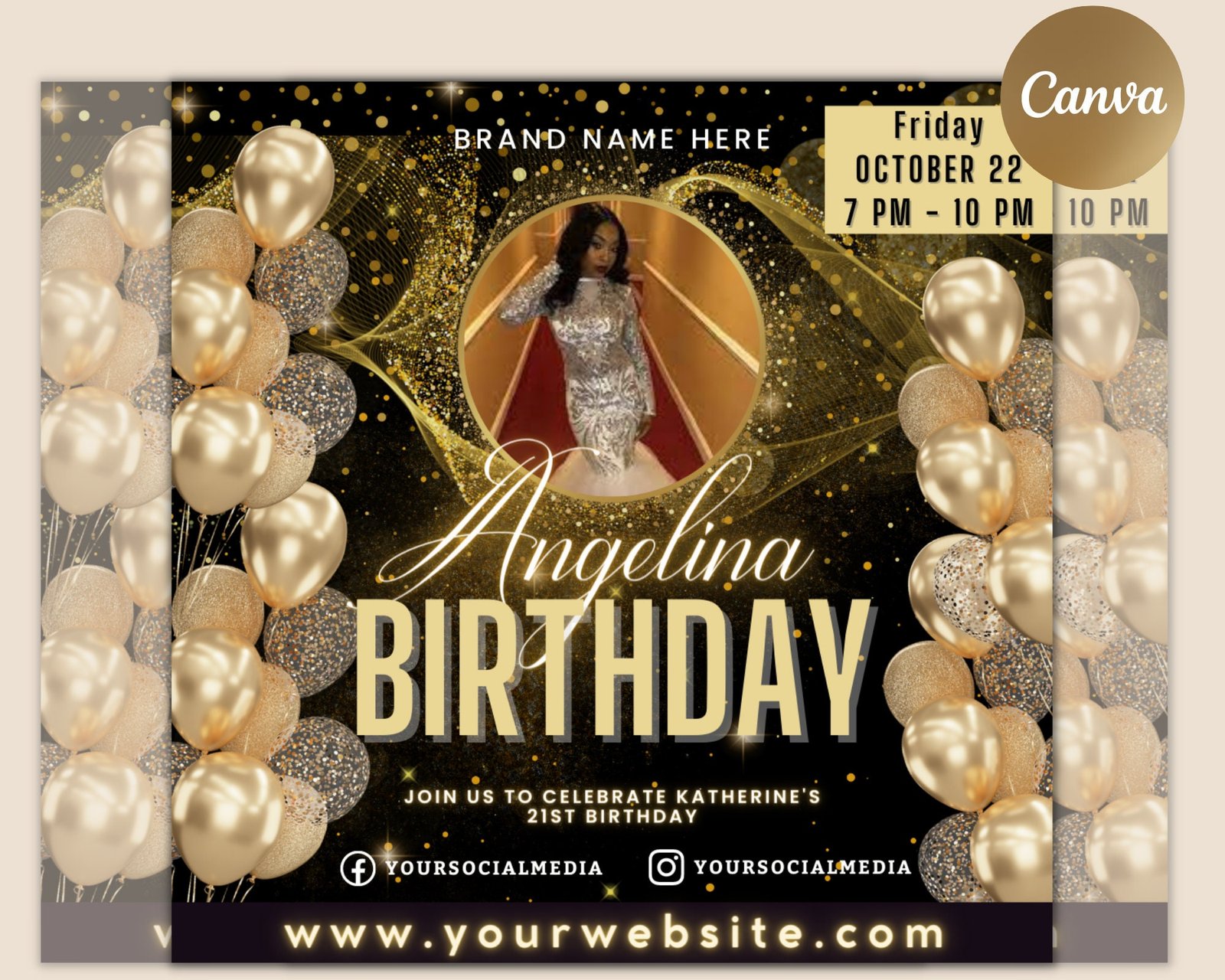Happy birthday flyer, editable birthday flyer, birthday girl invitation, birthday invite template, birthday party, birthday dinner