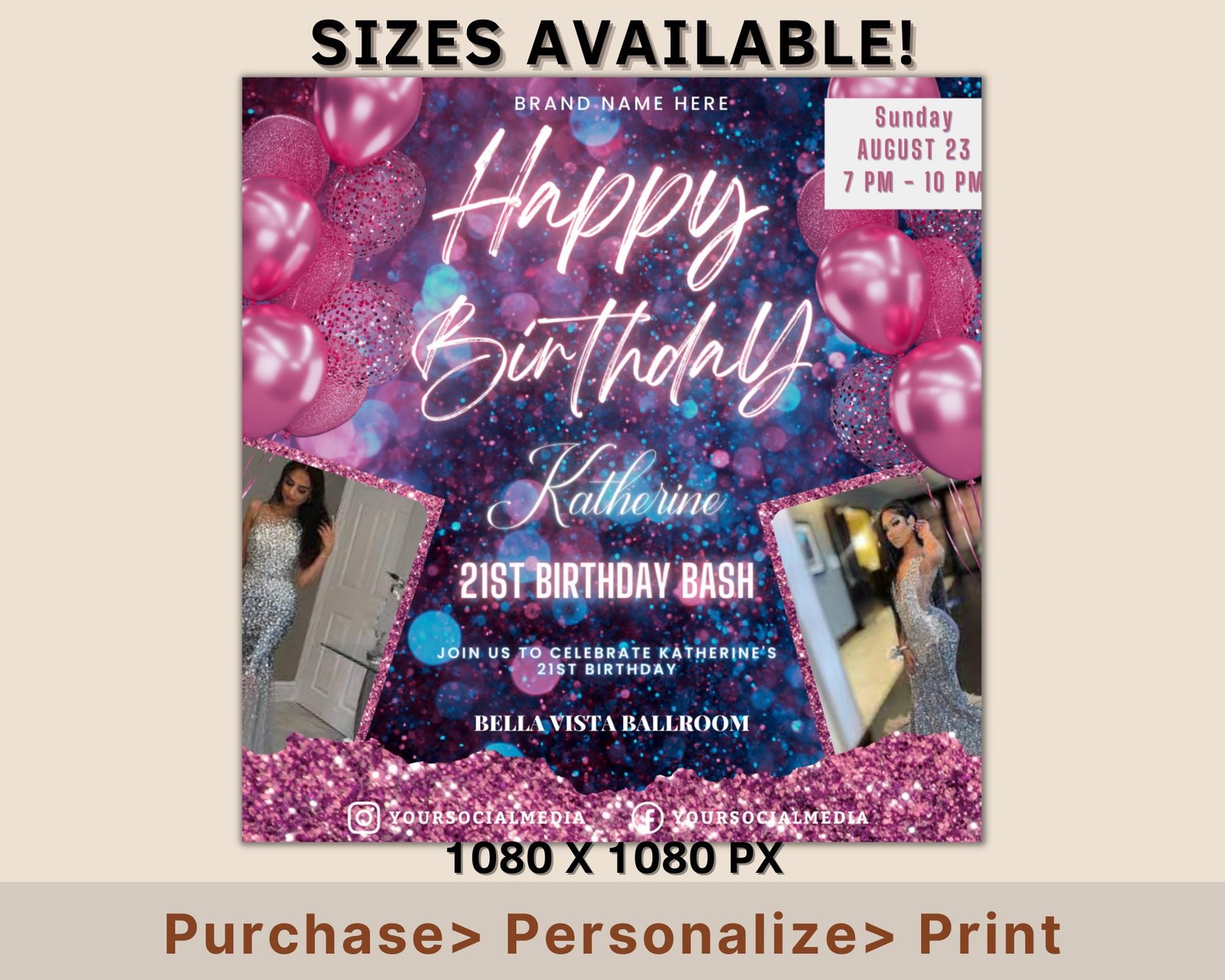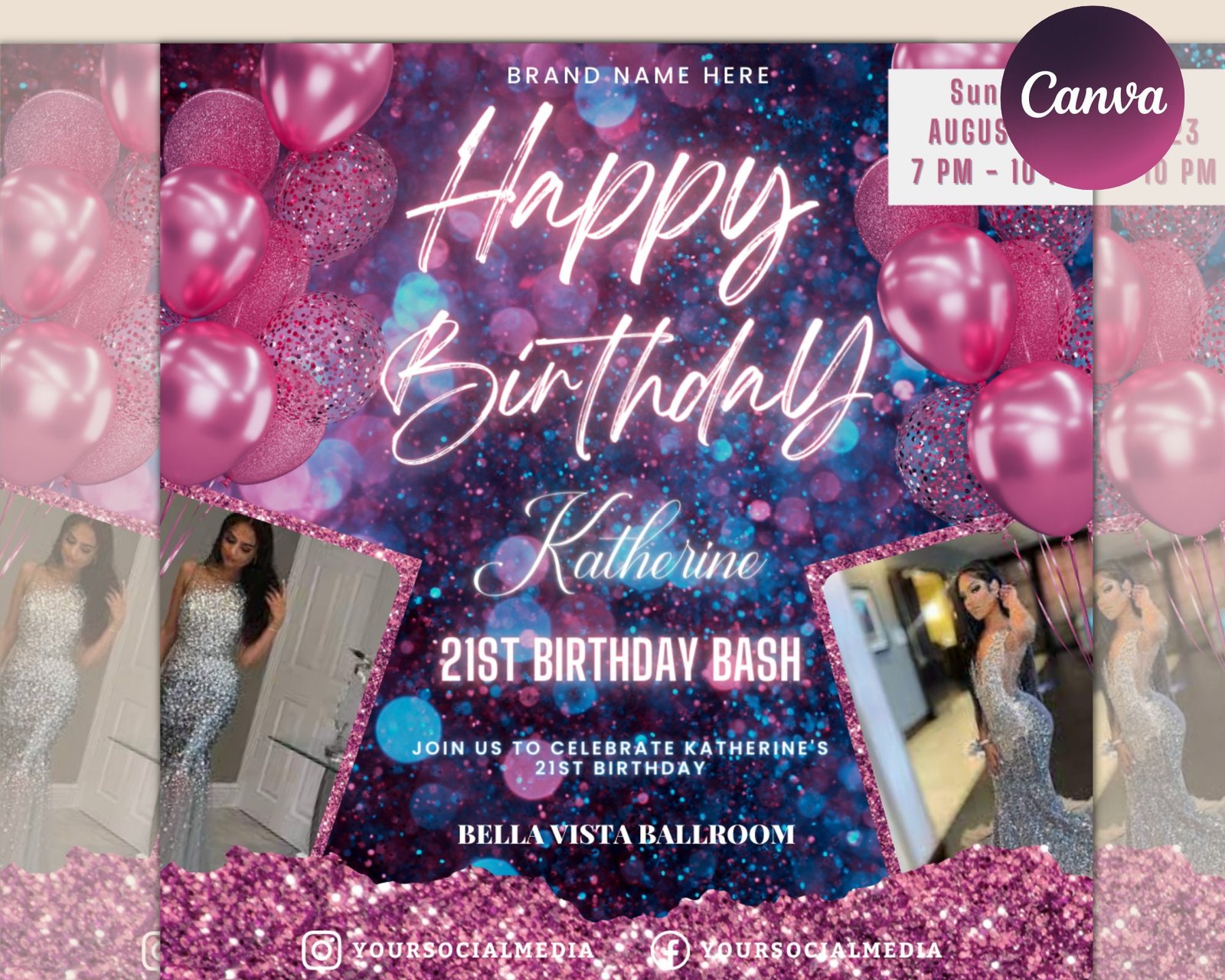 Happy Birthday Flyer, Editable Birthday Flyer, Birthday Girl Invitation, Birthday Invite Template, Birthday Party, Birthday Dinner