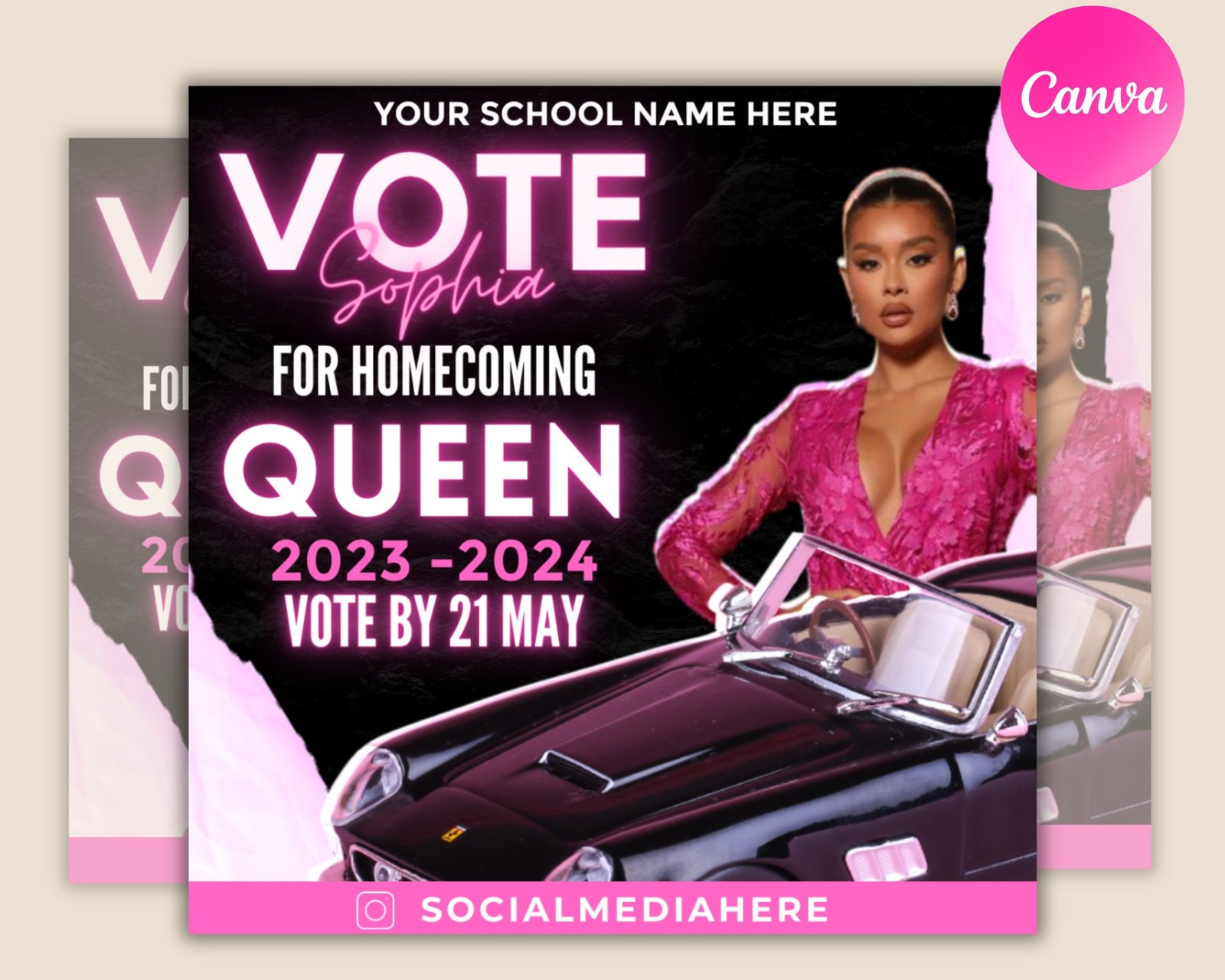 Homecoming flyer, vote homecoming queen flyer, campaign flyer, class campaign flyer, prom queen flyer, election flyer, canva templates