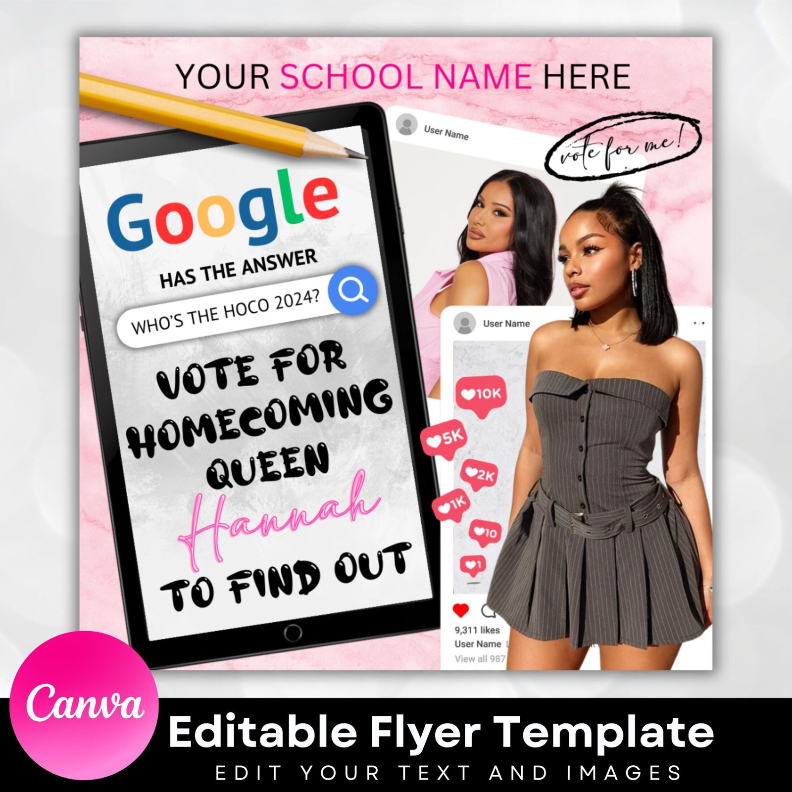 Homecoming Pop The Vote Flyer| DIY Voting Campaign Election High School Queen Beauty Social Media Instagram Snapchat Editable Canva Template