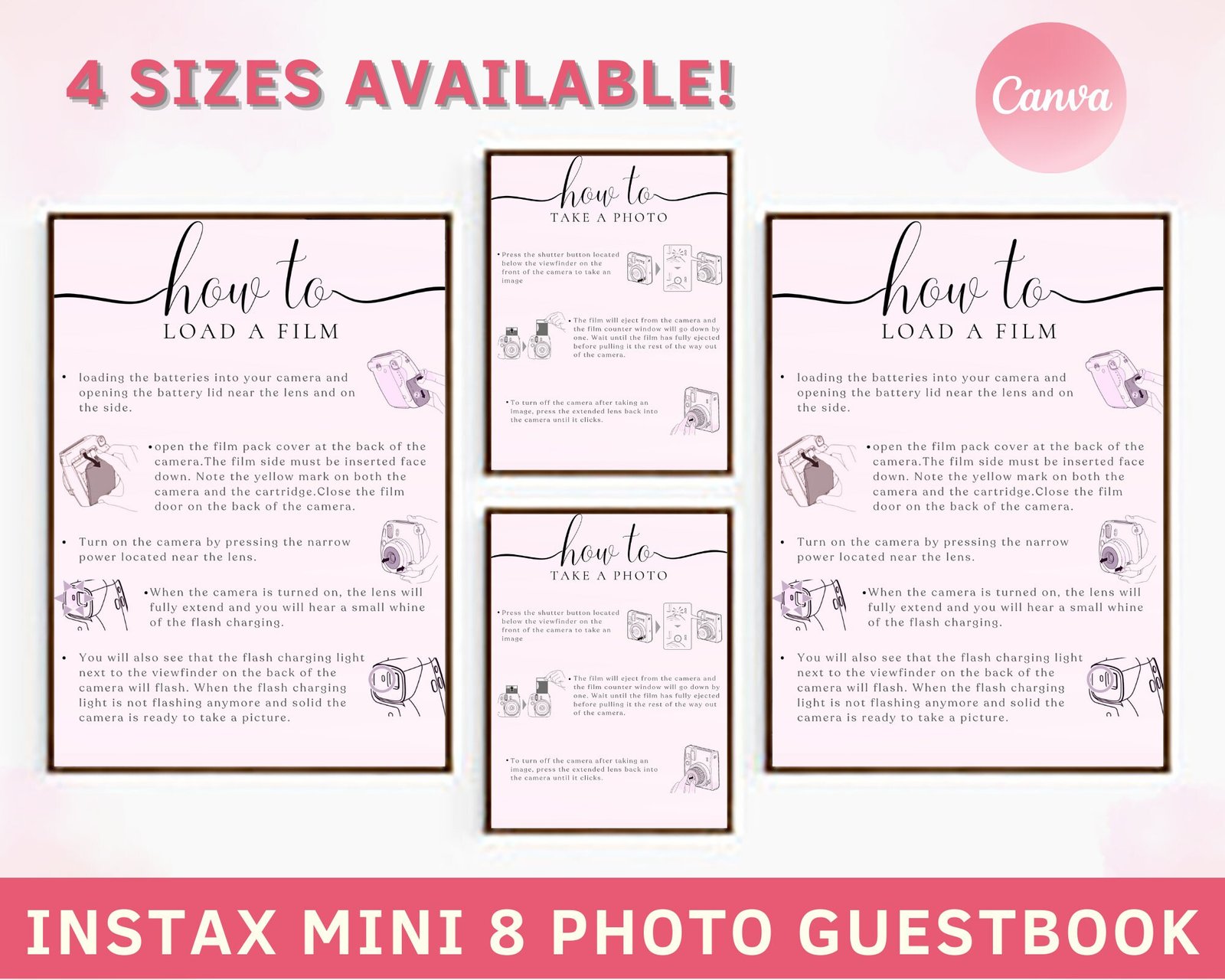 Instax mini 8 photo guestbook, instructions, wedding polaroid sign, how to load new film, instant download