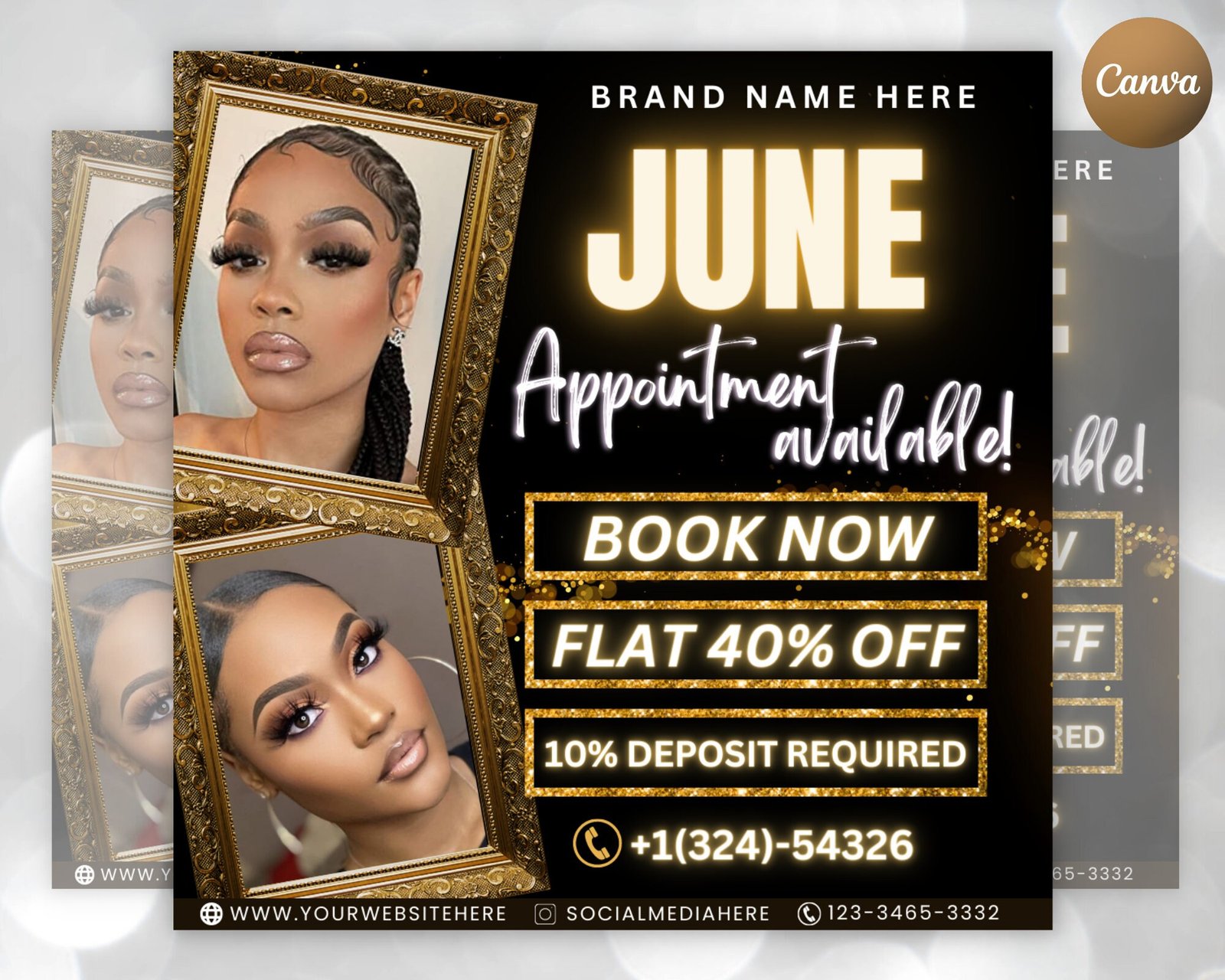 June booking flyer, diy summer flyer, appointment available flyer, book now flyer, hair lashes wigs makeup nails social media canva template