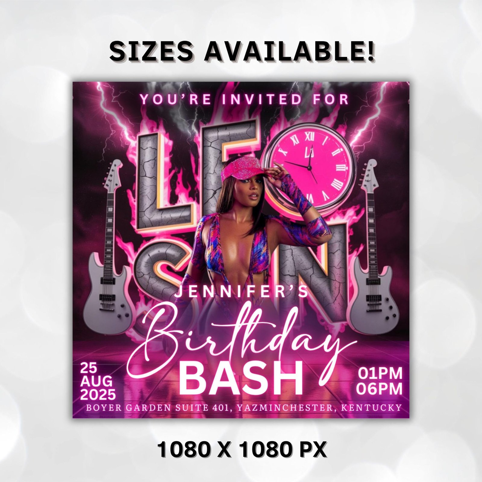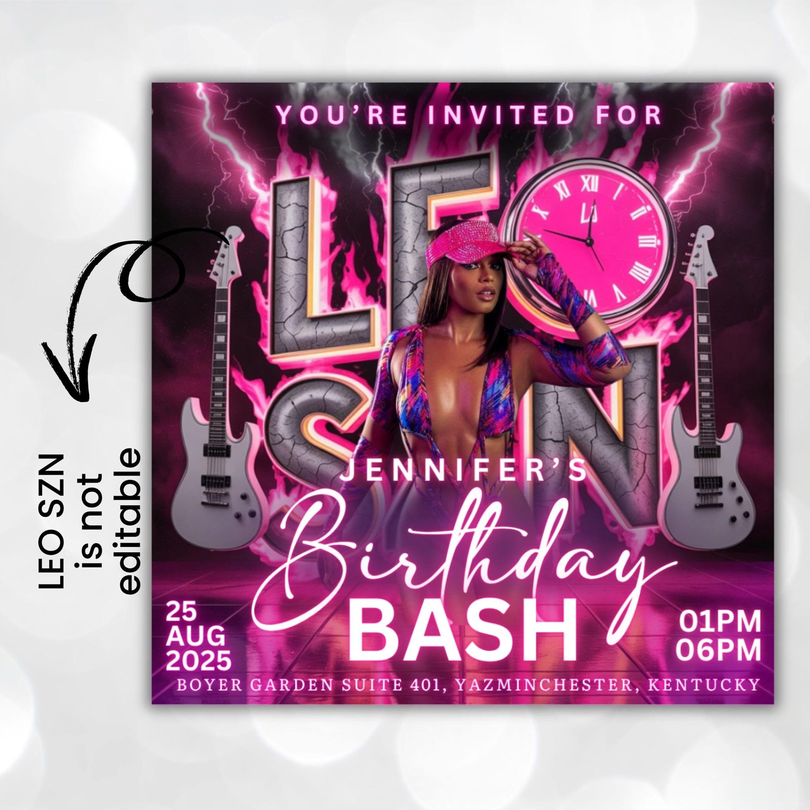 Leo Season Party Flyer, Birthday Szn Flyer, Leo Invitation Flyer, Leo Birthday Event, Social Media Flyer, Premade Flyer Template