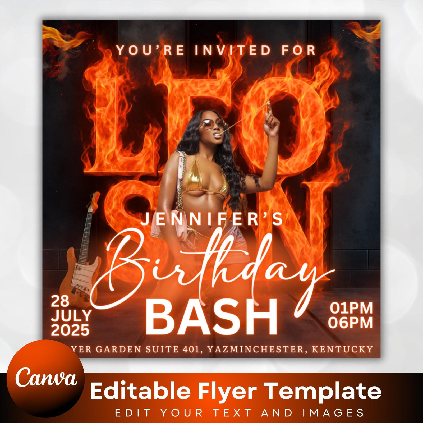 Celebrate like a true Leo with this elegant Leo Birthday Flyer Template! Perfect for promoting birthday parties, events, or club nights. Fully editable in Canva, this digital flyer features zodiac-ins