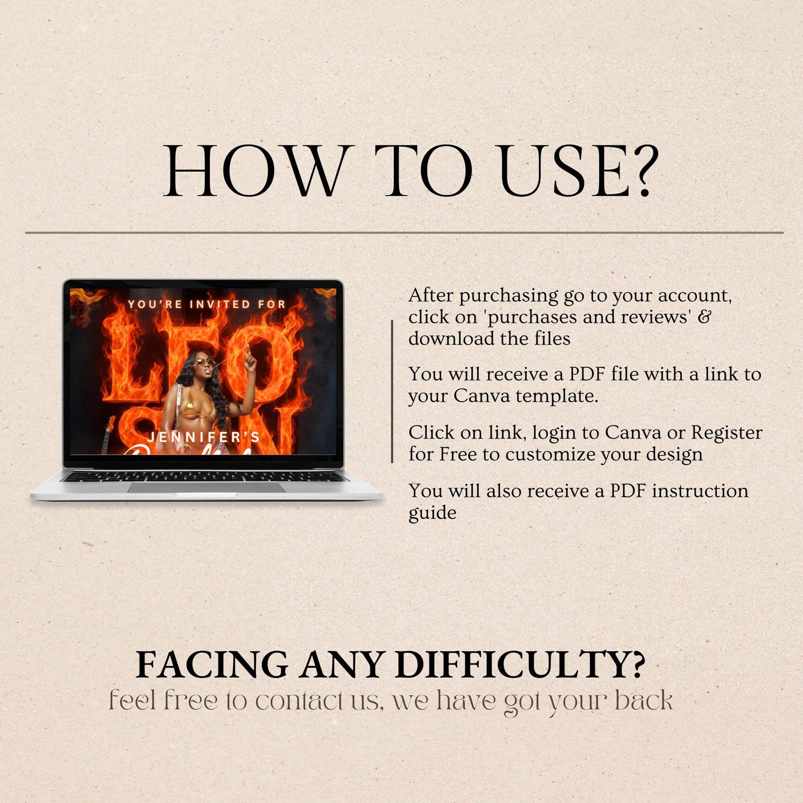 Purchase & Access – After payment, you’ll receive an email with a link to your editable design (sent to your Etsy-registered email).