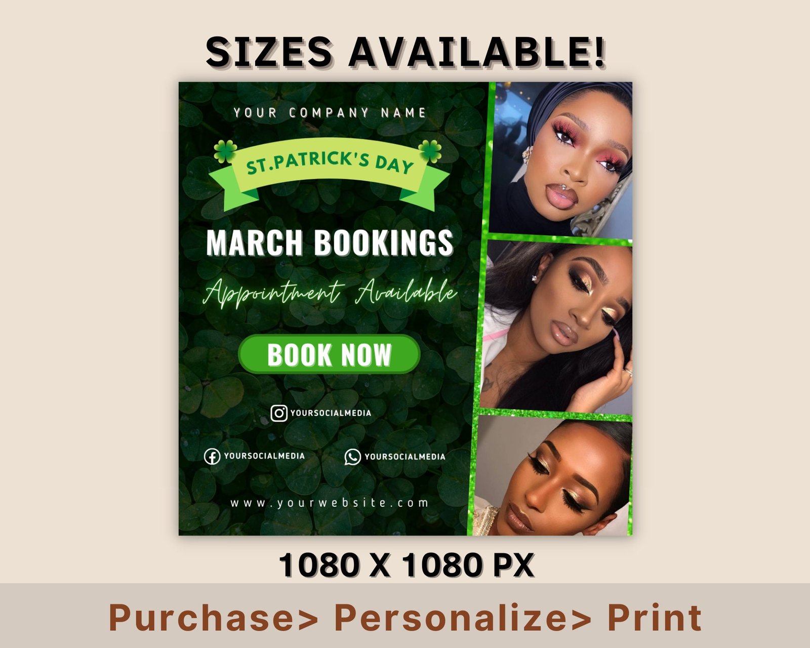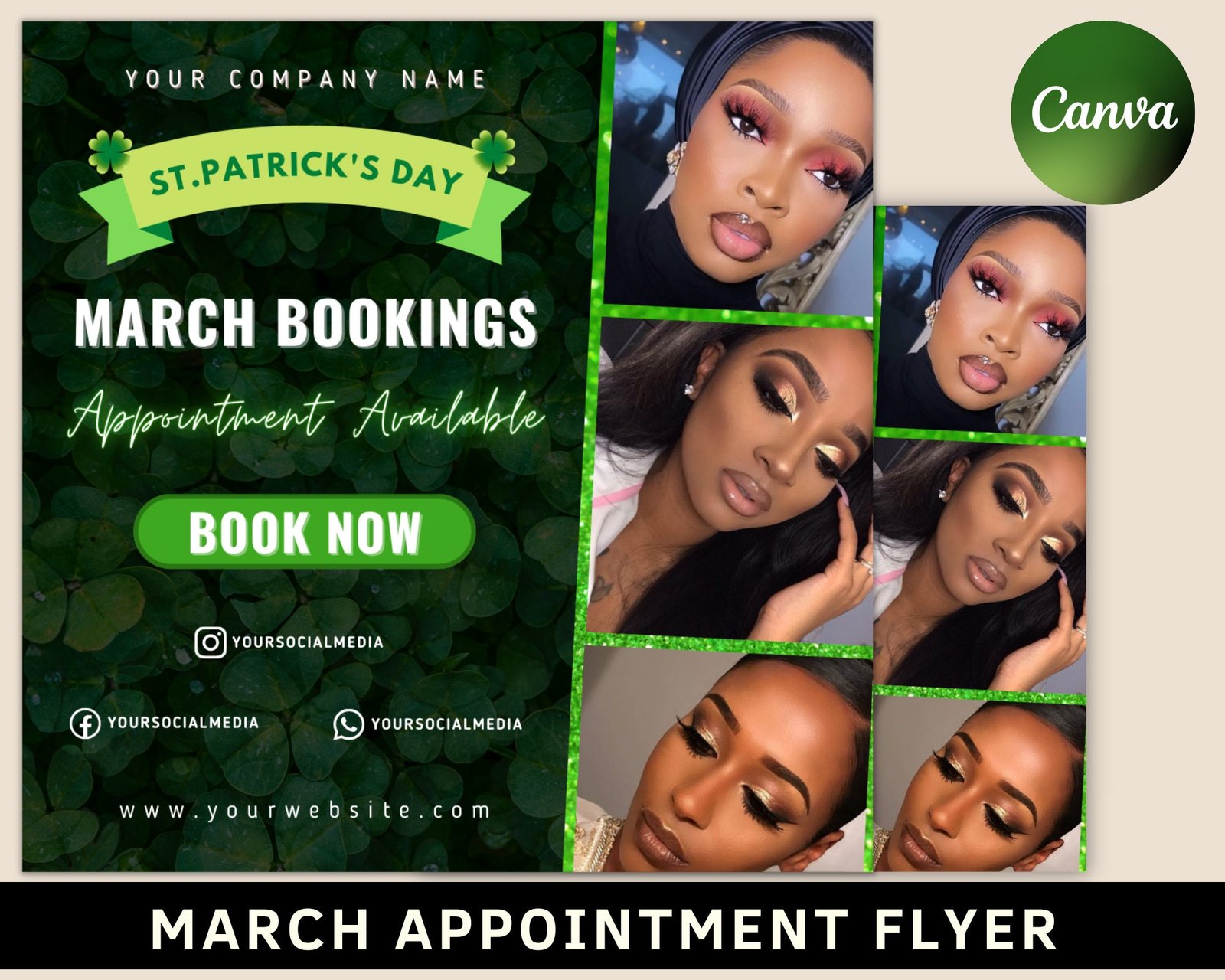March Booking Flyer, March Sale Flyer, March Appointment Flyer, Book Now Flyer, St. Patricks Day Flyer, Hair, Nail, Makeup, Lashes Flyer, bookings flyer Appointment Flyer Book