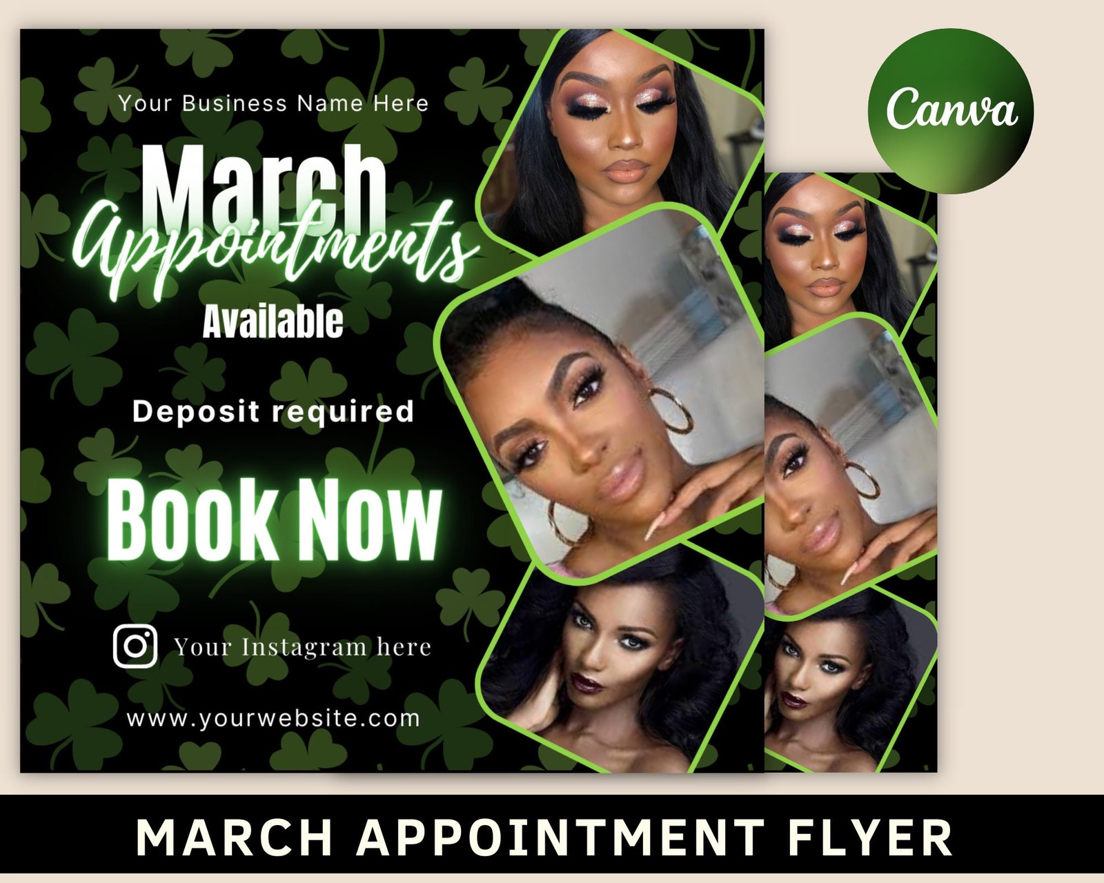 March booking flyer, march sale flyer, march appointment flyer, book now flyer, st. patricks day flyer, hair, nail, makeup, lashes flyer