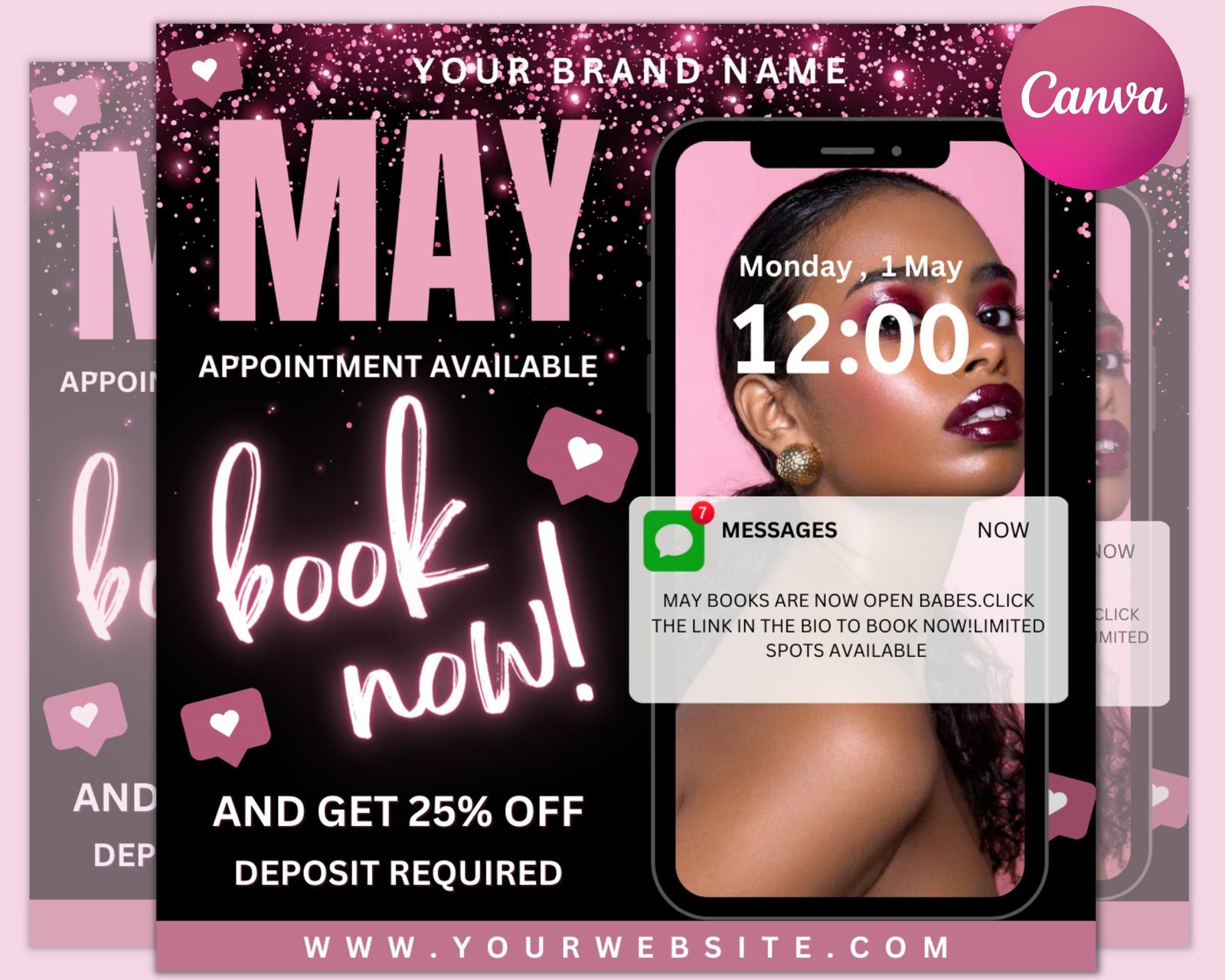 May bookings flyer, may bookings available, may appointment flyer, spring flyer, hair, nails, makeup, lashes