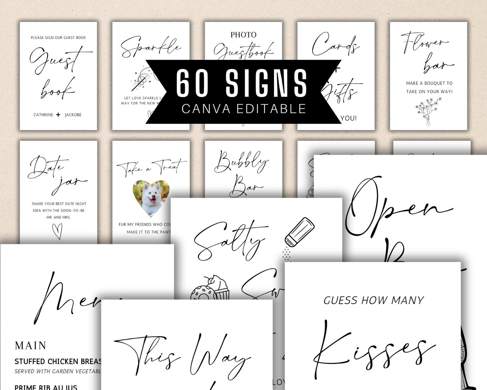 Minimalist 60 wedding sign template bundle,modern minimalist wedding sign reception sign bundle, editable template bundleboho wedding bundle