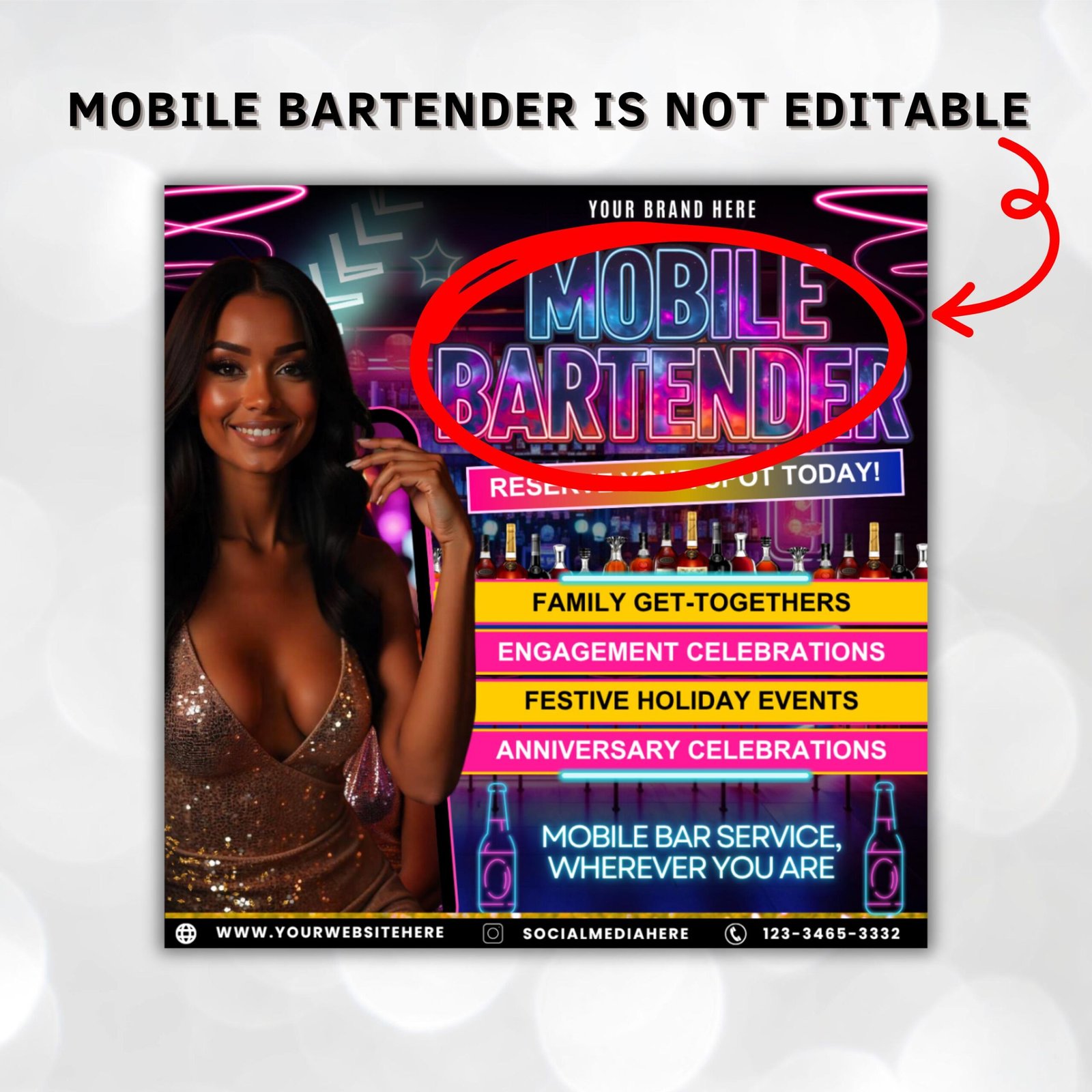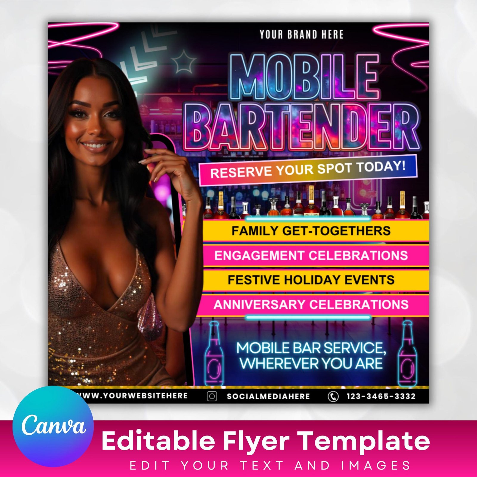 Mobile bartending flyer, diy mixologist bartender drink services party event planning rental social media instagram canva editable template