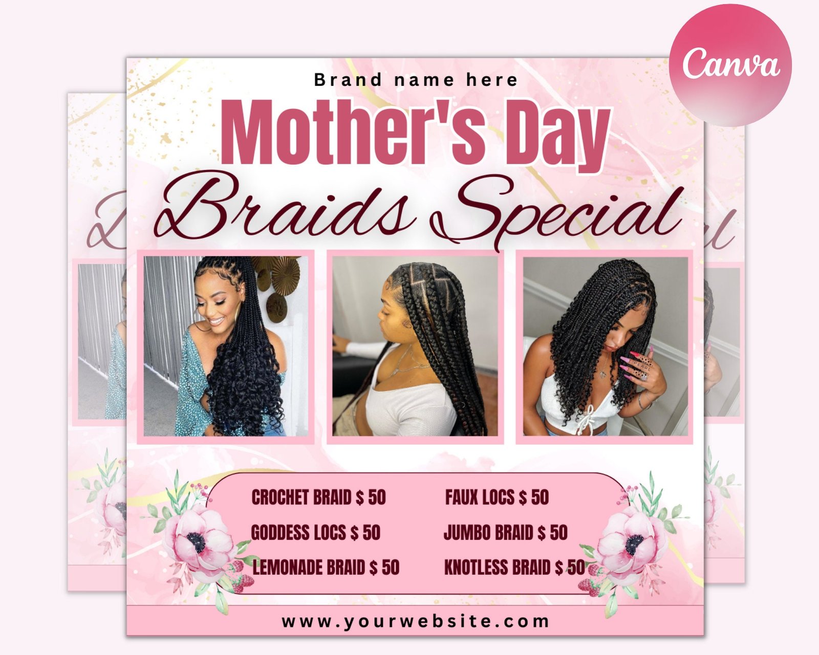 Mothers day braid sale flyer, braid prices flyer, braids sale flyer, hair flyer, lashes flyer, braids special flyer template, social media
