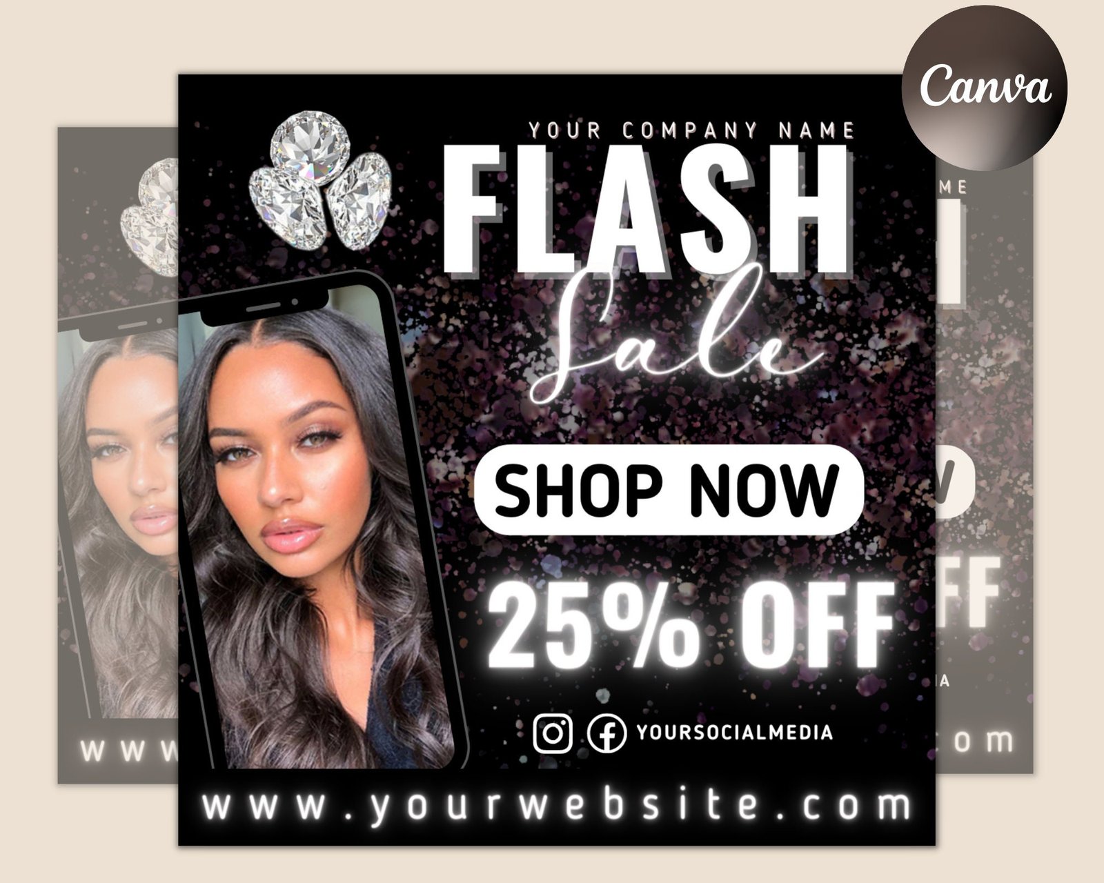 New Arrival Shop Now Hair Bundles Lash Tech Makeup Nail Boutique Social Media Editable DIY Canva Template, Flash Sale Flyer Template