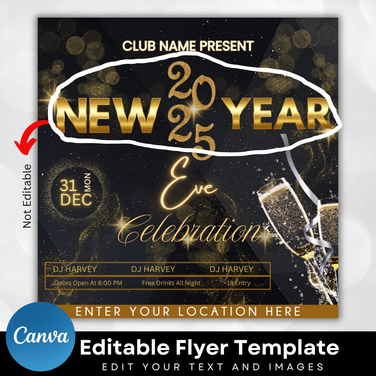 New Year Party Flyer 2025, Canva Template Flyer, Happy New Year, Countdown Night Event Flyer, DIY Event Flyer, Dj Party Flyer Template