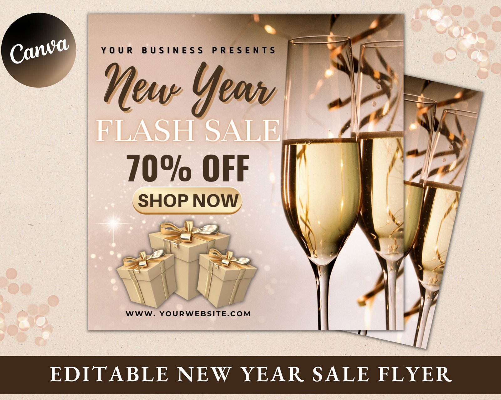 New year sale flyer, holiday sale flyer, social media flyer, new year booking, sale flyer, flash sale flyer, pre made flyer, nye flyer