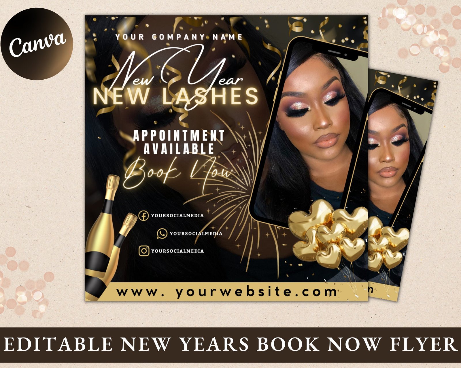 New years lash flyer, new year book now flyer, lash extensions flyer, new year book now flyer, lash extension, hair lash makeup braids