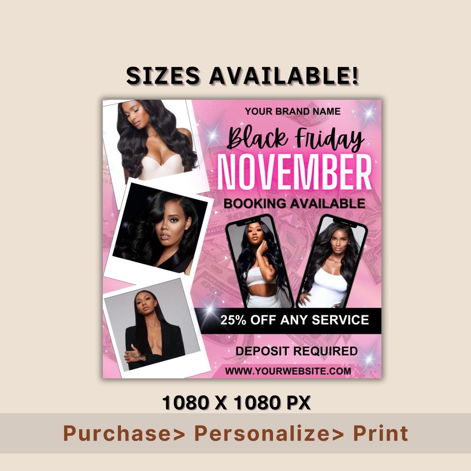 November Black Friday Booking Flyer, Book Now, November Sale Flyer, Hair Braids Wig Lashes Nails Editable – Canva DIY Flyer