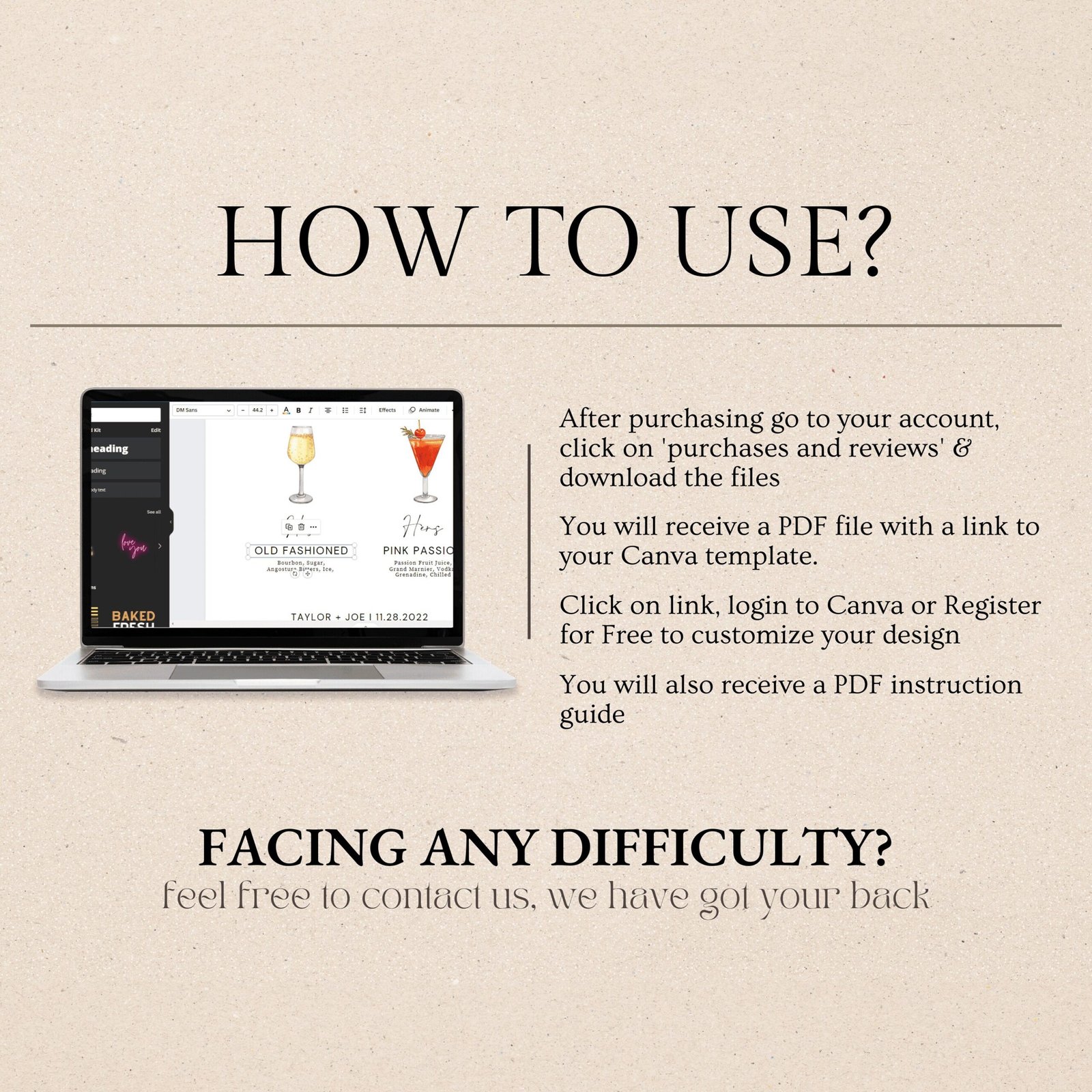 Purchase & Access – After payment, you’ll receive an email with a link to your editable design (sent to your Etsy-registered email).