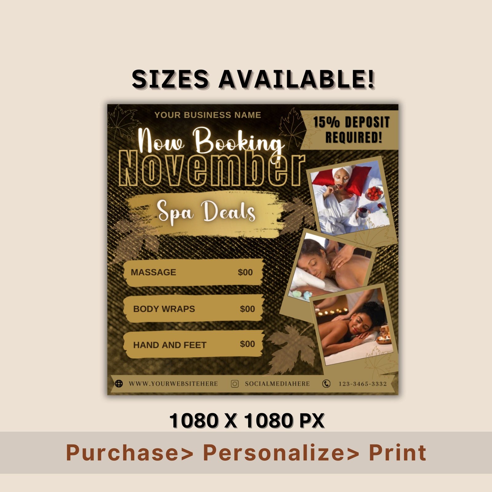 November Booking Flyer, Fall Bookings flyer, Spa Deals Flyer, Makeup Flyer, Deals Flyer, Book Now Appointments, Canva Template