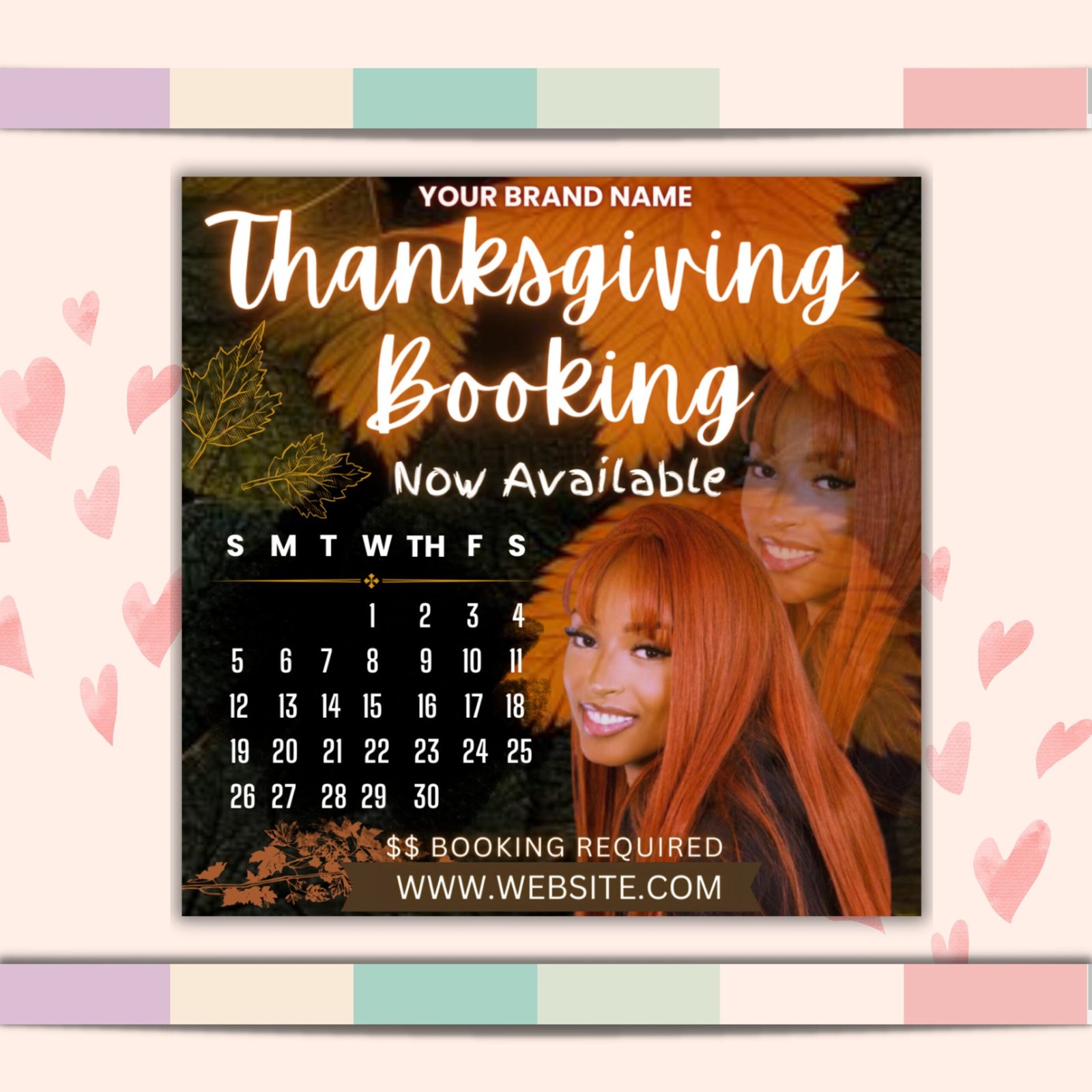 November Booking Flyer, Thanksgiving Booking Flyer, Deals Flyer, Makeup Flyer, Hair Flyer, Nail Tech Flyer, Book Now Flyer