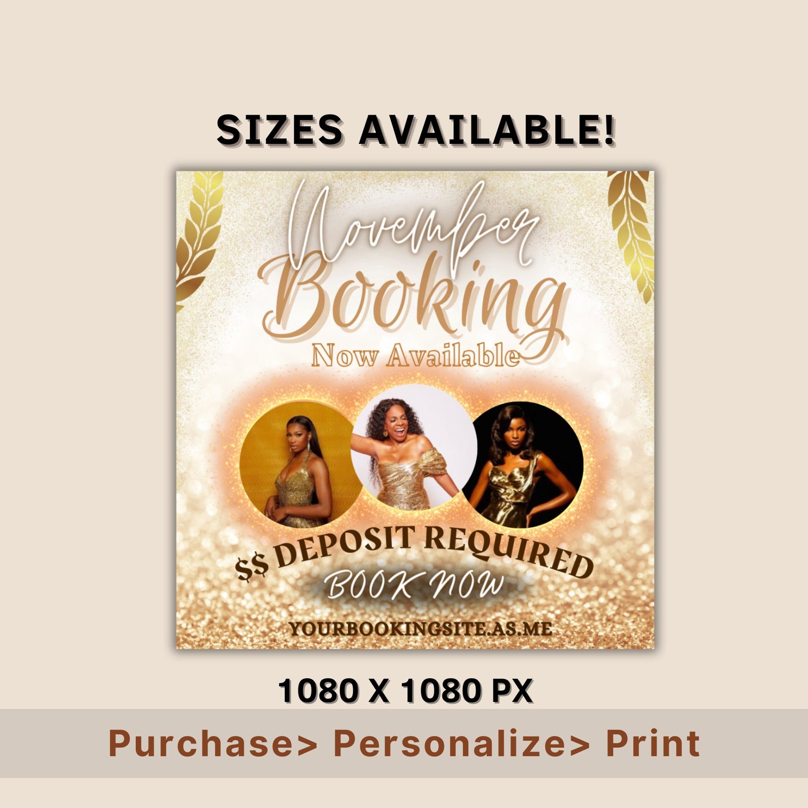 November Bookings Flyer, Fall Bookings Flyer, Book Now Appointments, Beauty, Lashes, Make up, Nails, Hair, Canva Template