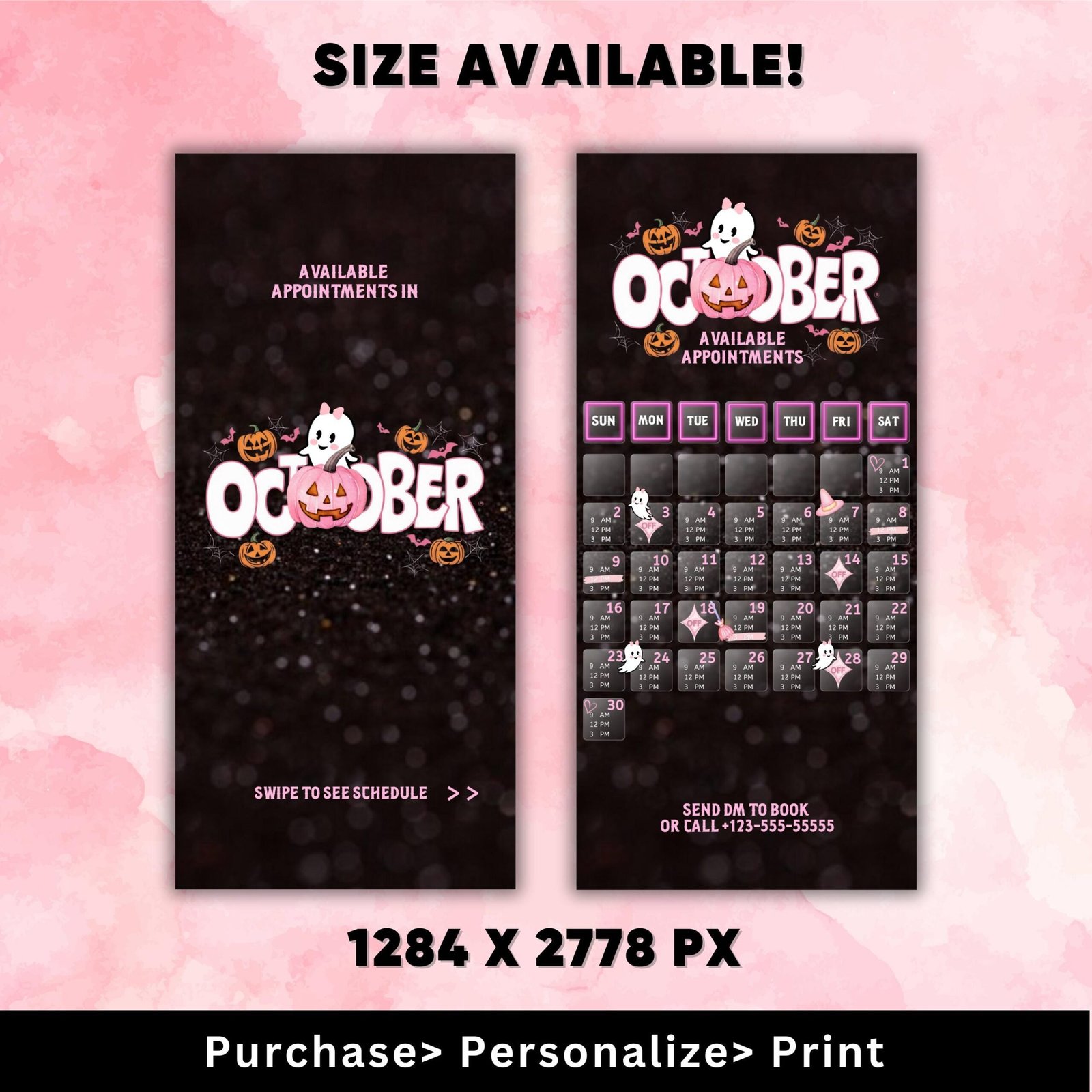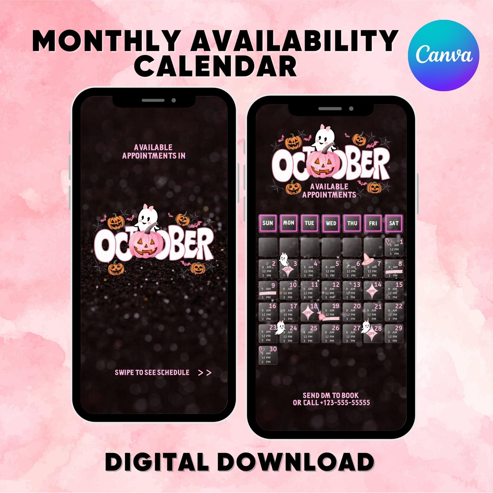 October Availability Calendar, Instagram Story Calendar, Halloween October Hairs Nails, Canva Template, Appointments Available,