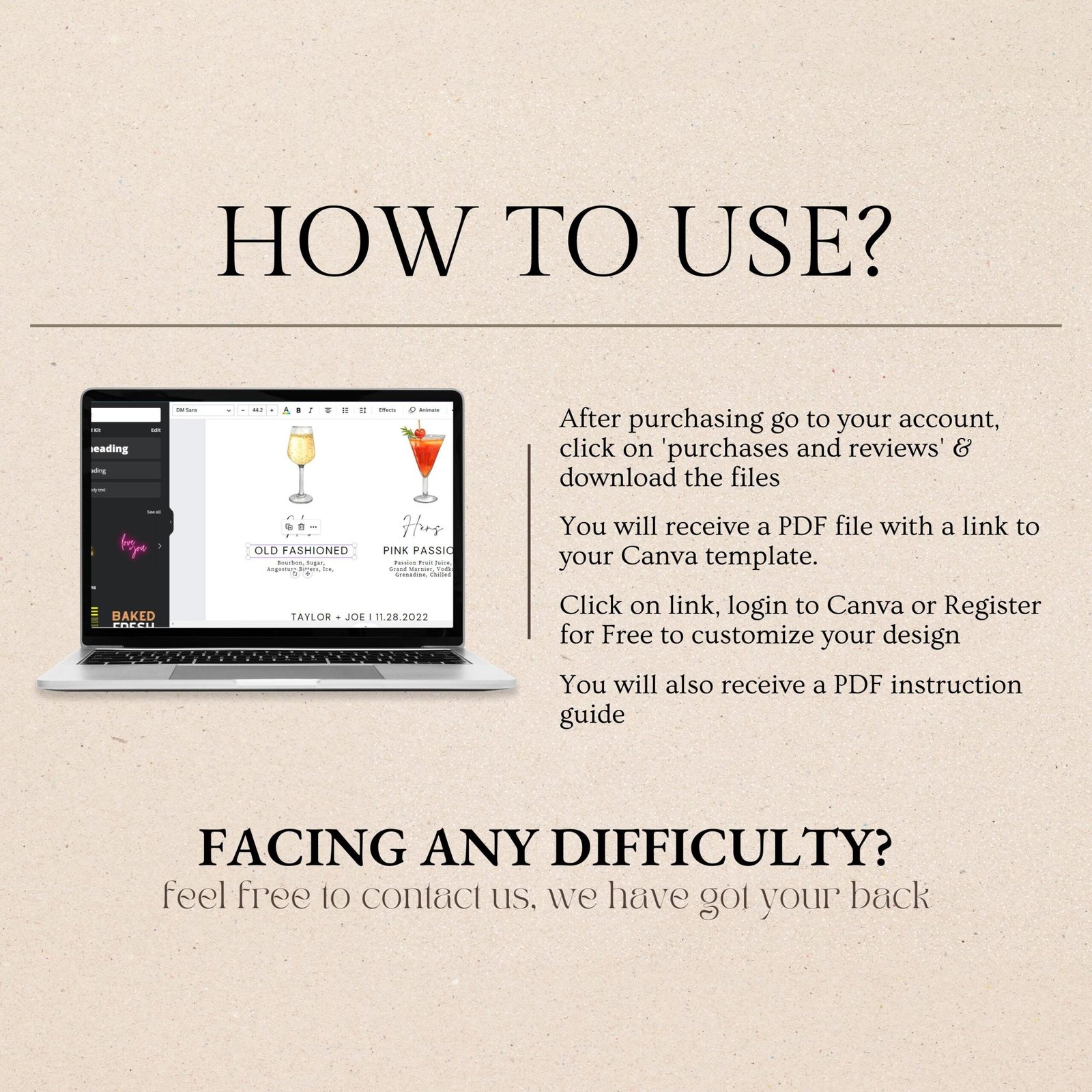 Purchase & Access – After payment, you’ll receive an email with a link to your editable design (sent to your Etsy-registered email).
