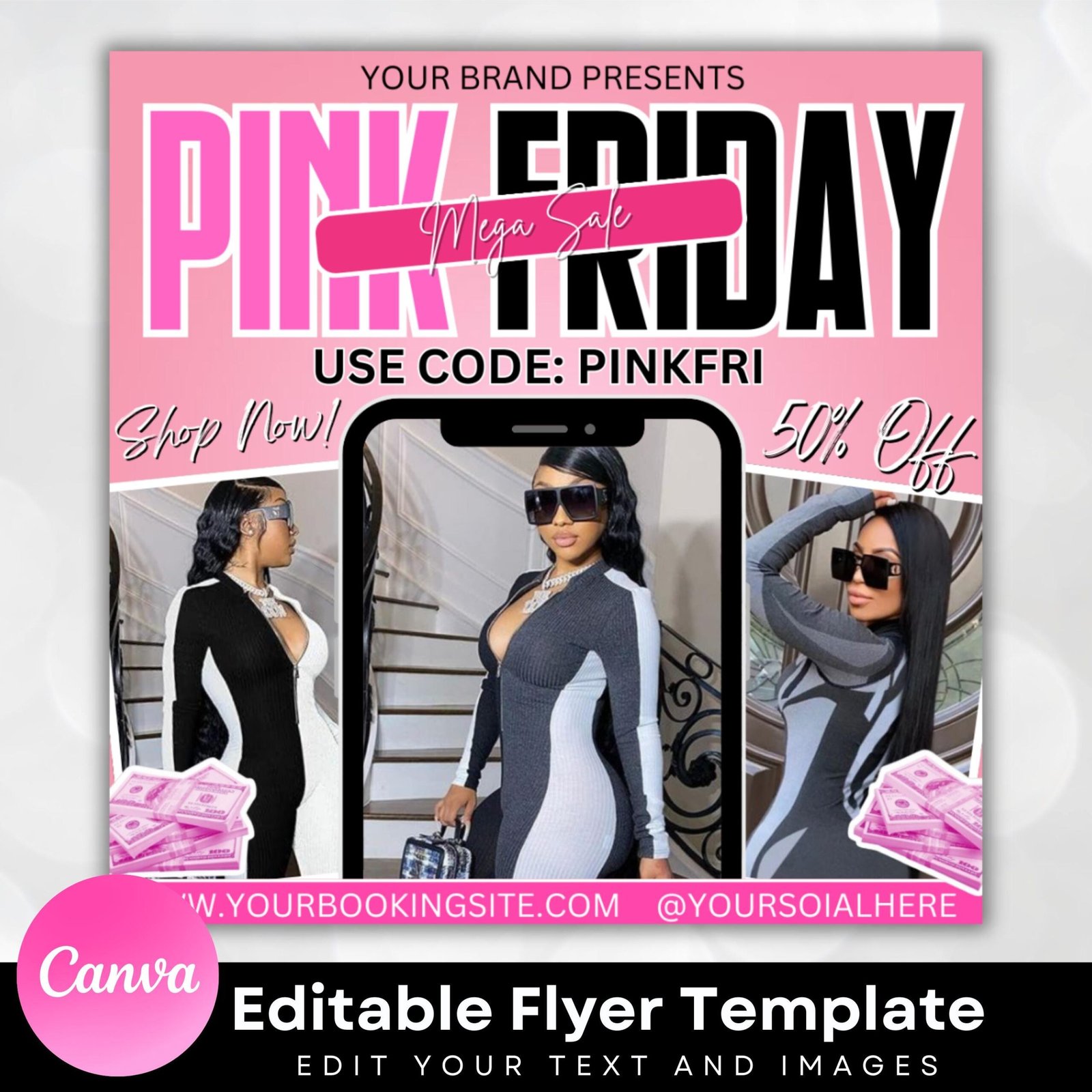 Announce on all your Social media handles your Pink Friday sale with this amazing Black Friday flyer. Edit on canva account no additional purchases required! Pink Friday, Black Friday Flyer, Book Now