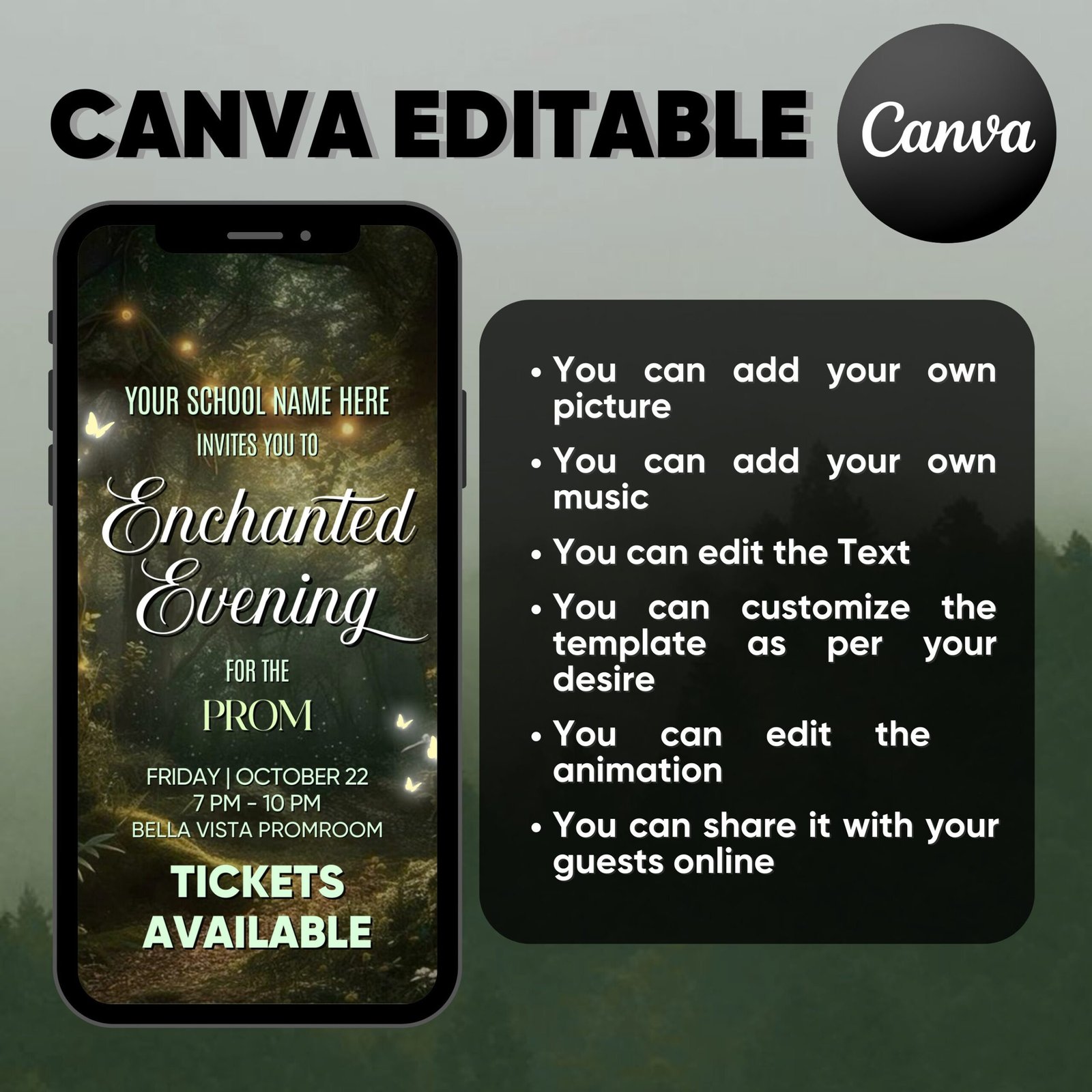 Prom Enchanted Forest Invitation, Enchanted Garden Theme Invitation, Prom Forest Invitation, Prom Event invitation, Prom Digital Invite
