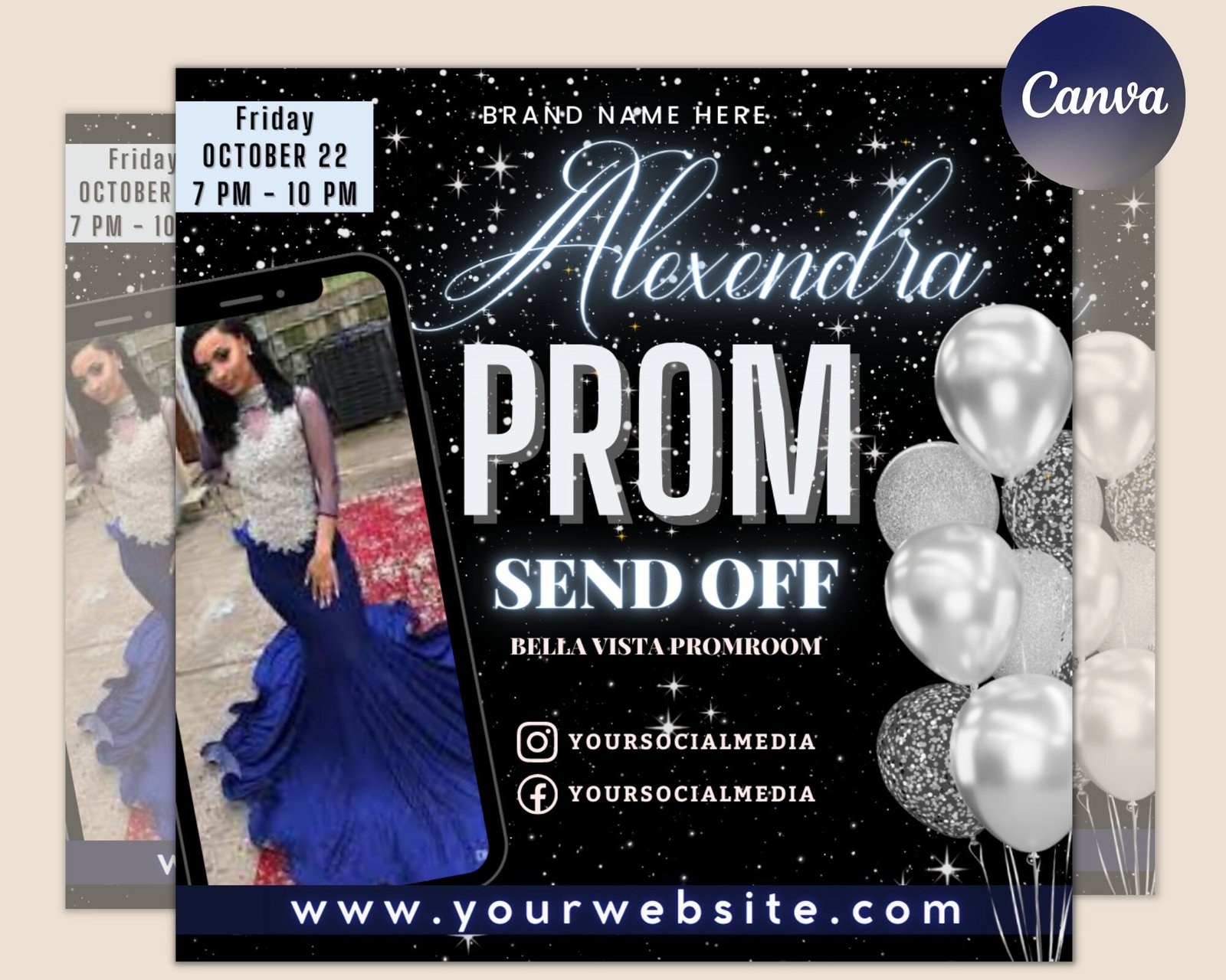 Prom invitation, prom send off flyer, prom invitation flyer, prom flyer, prom sale flyer, prom party invite, editable template in canva