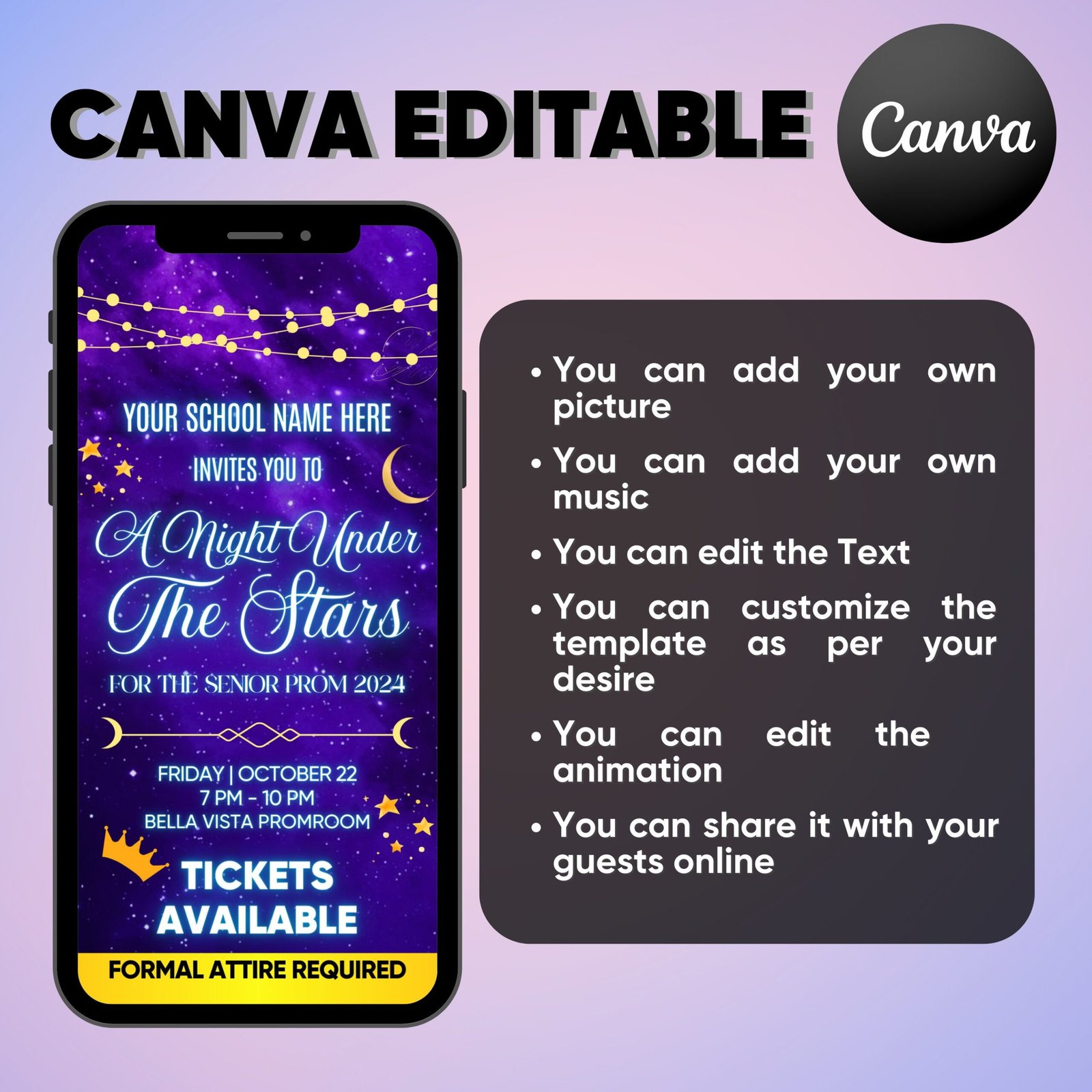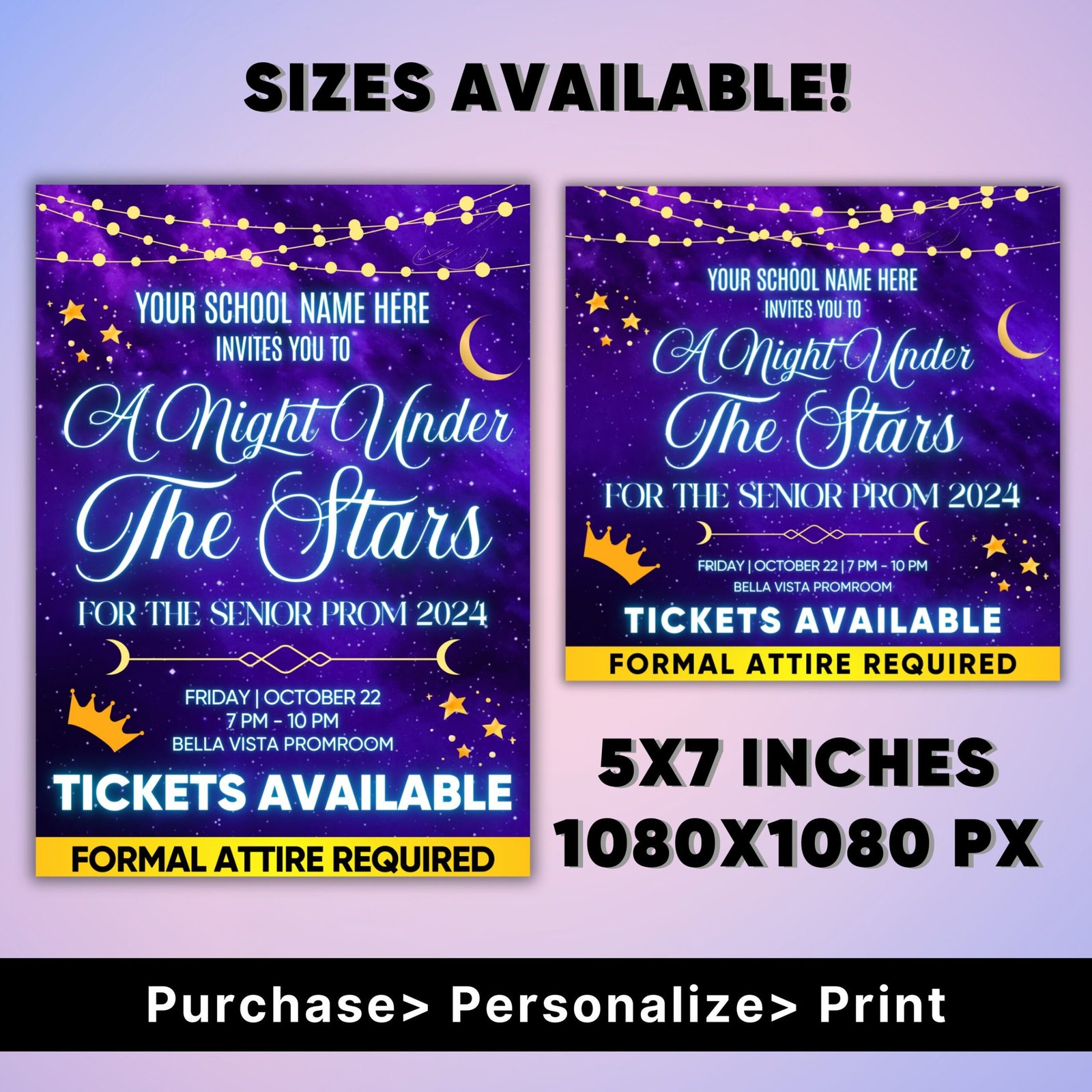 Prom Send Off, A Night Under The Stars Prom Flyer, School Dance Prom Flyer, Prom Invitation Flyer, Prom Flyer, Prom Party, Editable Template