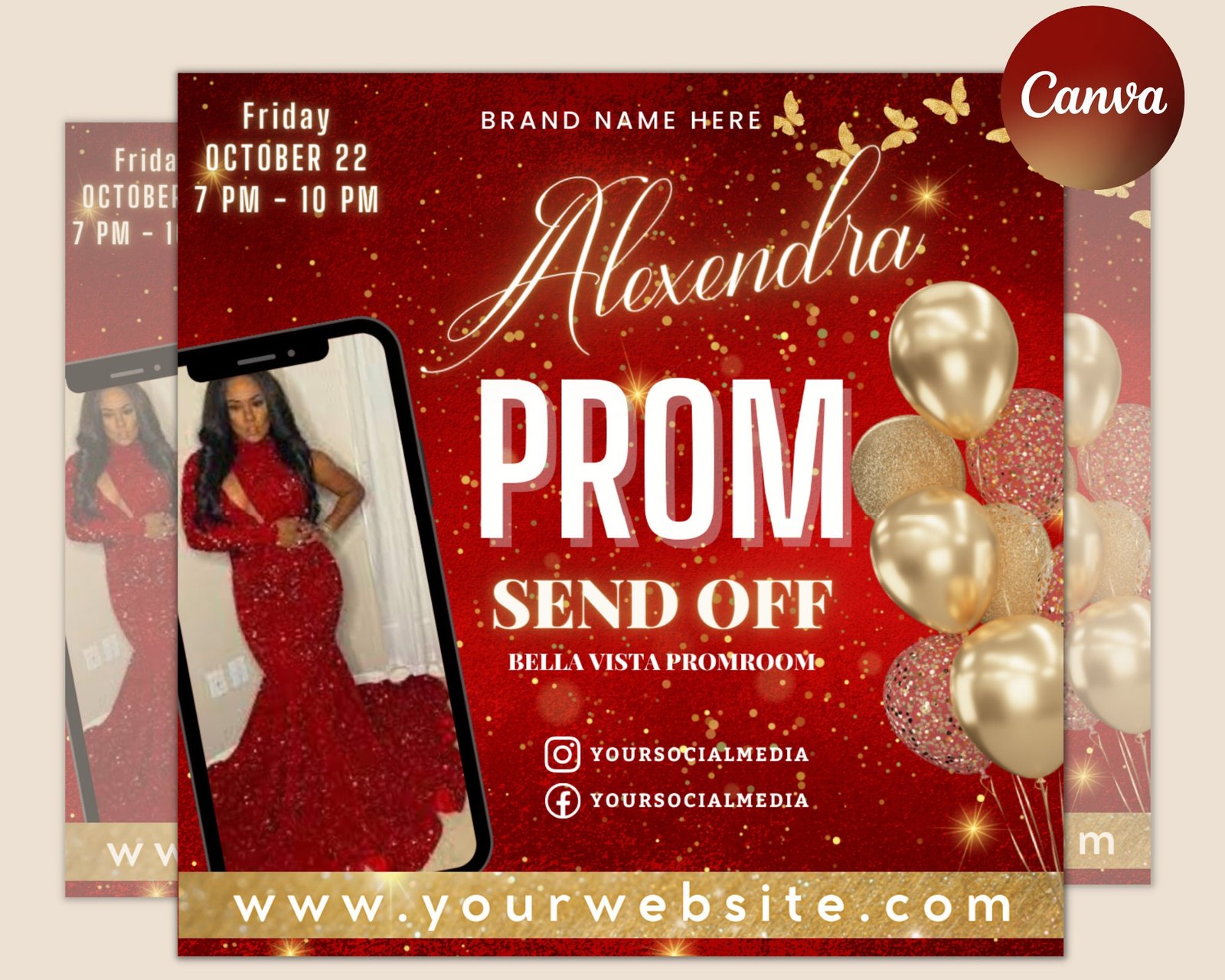 Prom send off flyer, prom invitation, prom invitation flyer, prom flyer, prom sale flyer, prom party, editable template in canva