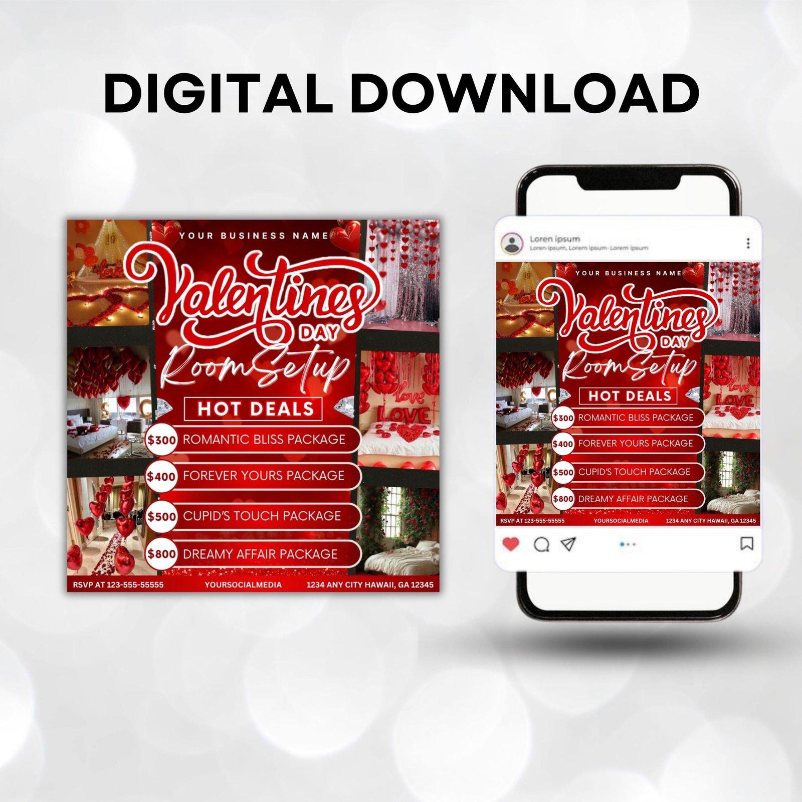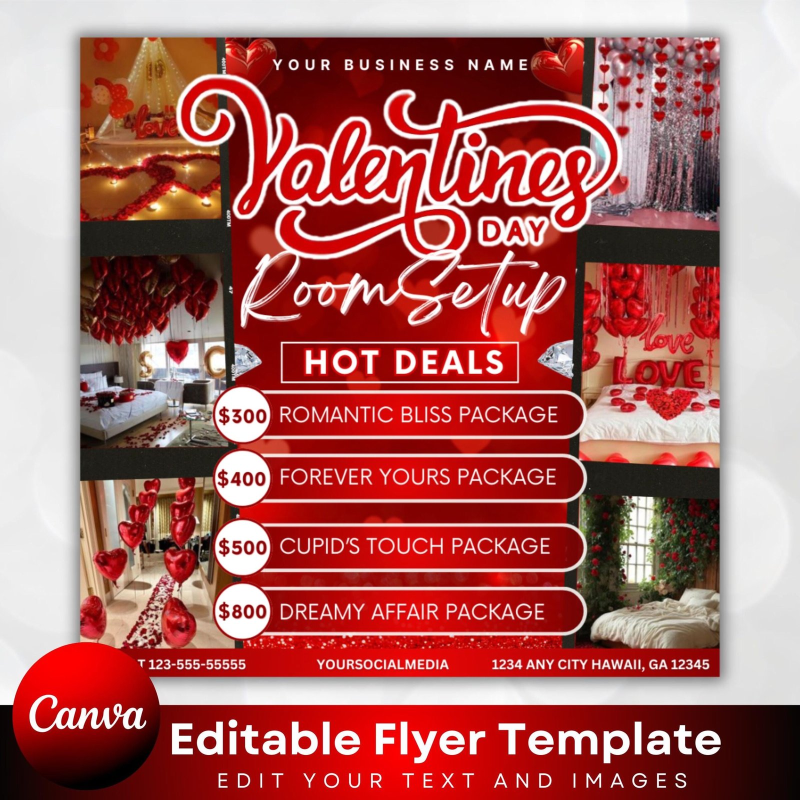 Room Setup Valentines Booking Flyer, Valentine Room Setup Flyer, Valentines Day Flyer, Room Decoration Flyer,Hotel Book Flyer,Canva Template