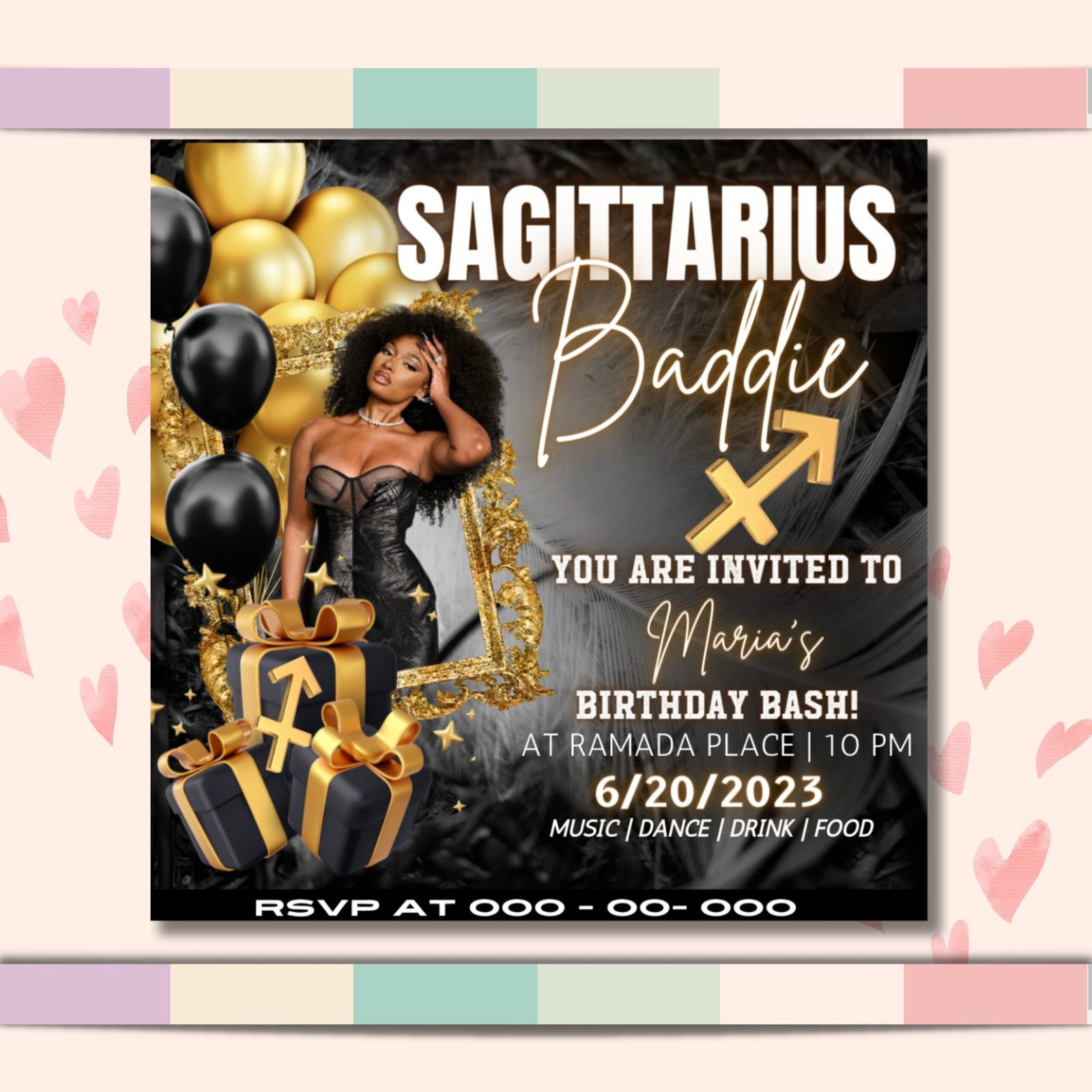 Sagittarius Birthday Flyer, Birthday Girl, Happy Birthday Flyer, Sagittarius Season, Sagittarius Party, Celebration Flyer, Canva Editable