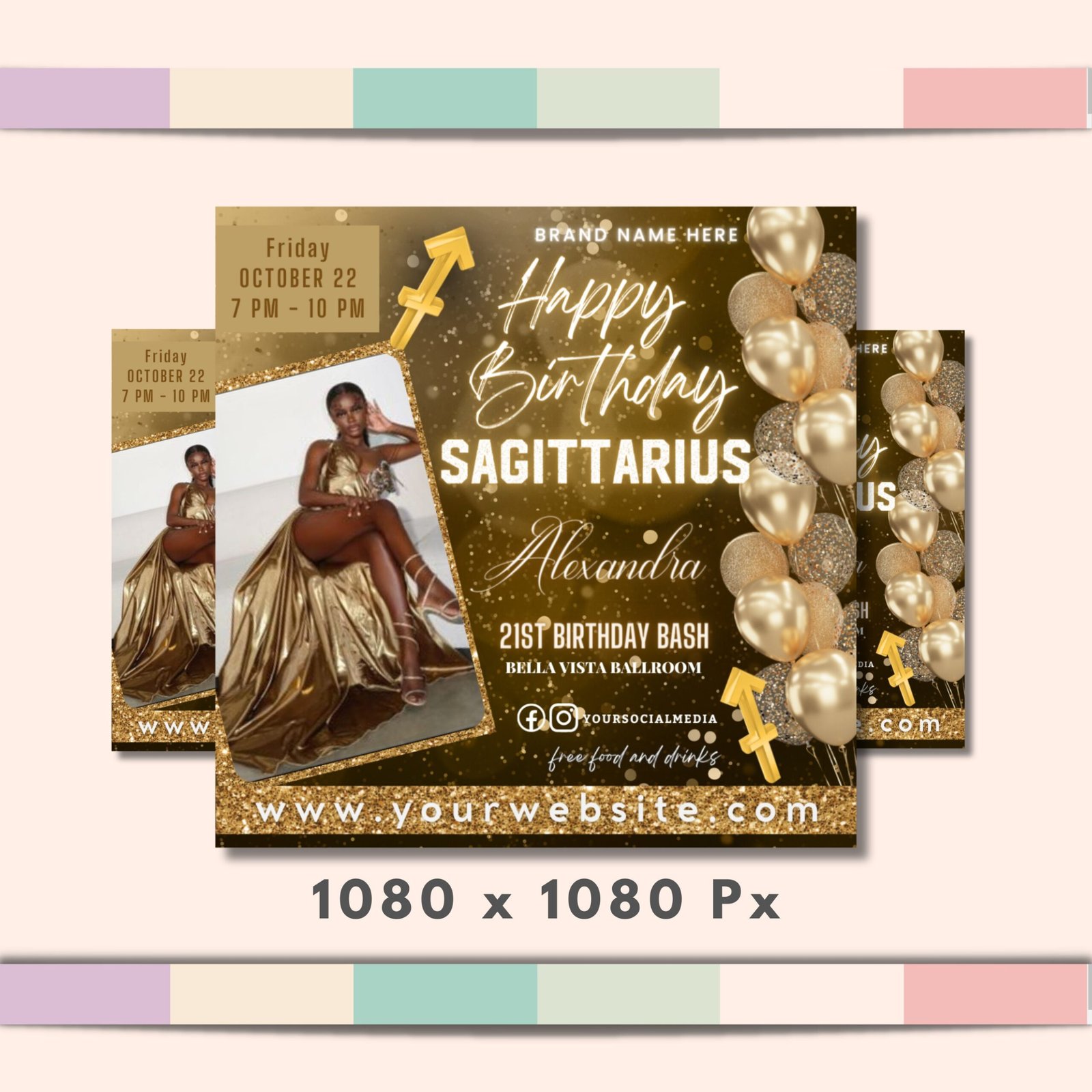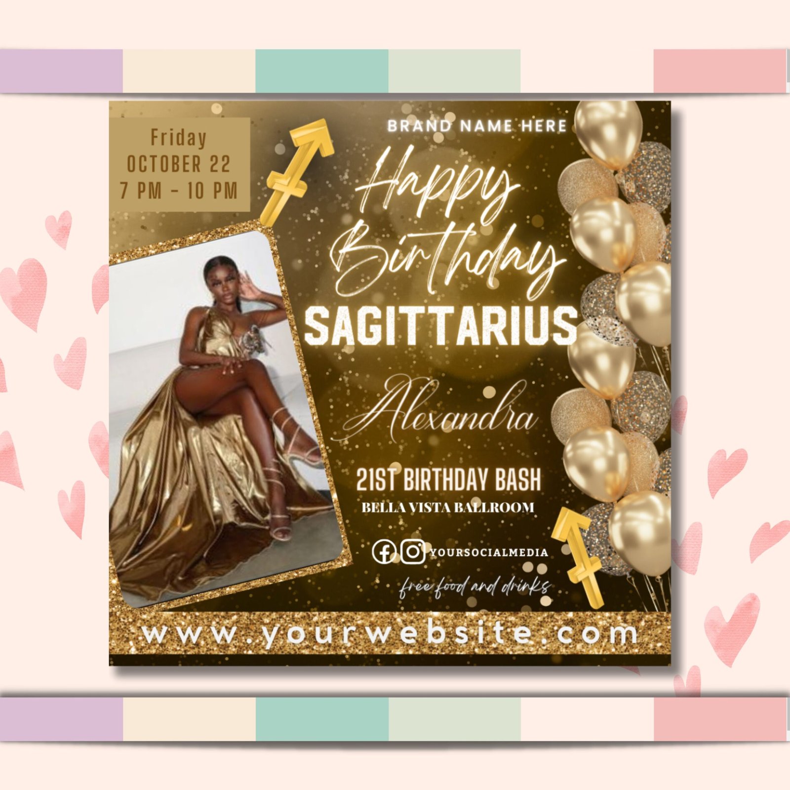Sagittarius Birthday Flyer, Sagittarius Birthday Invitation, Birthday Flyer, Sagittarius Bash Flyer, Birthday Flyer Template For Woman