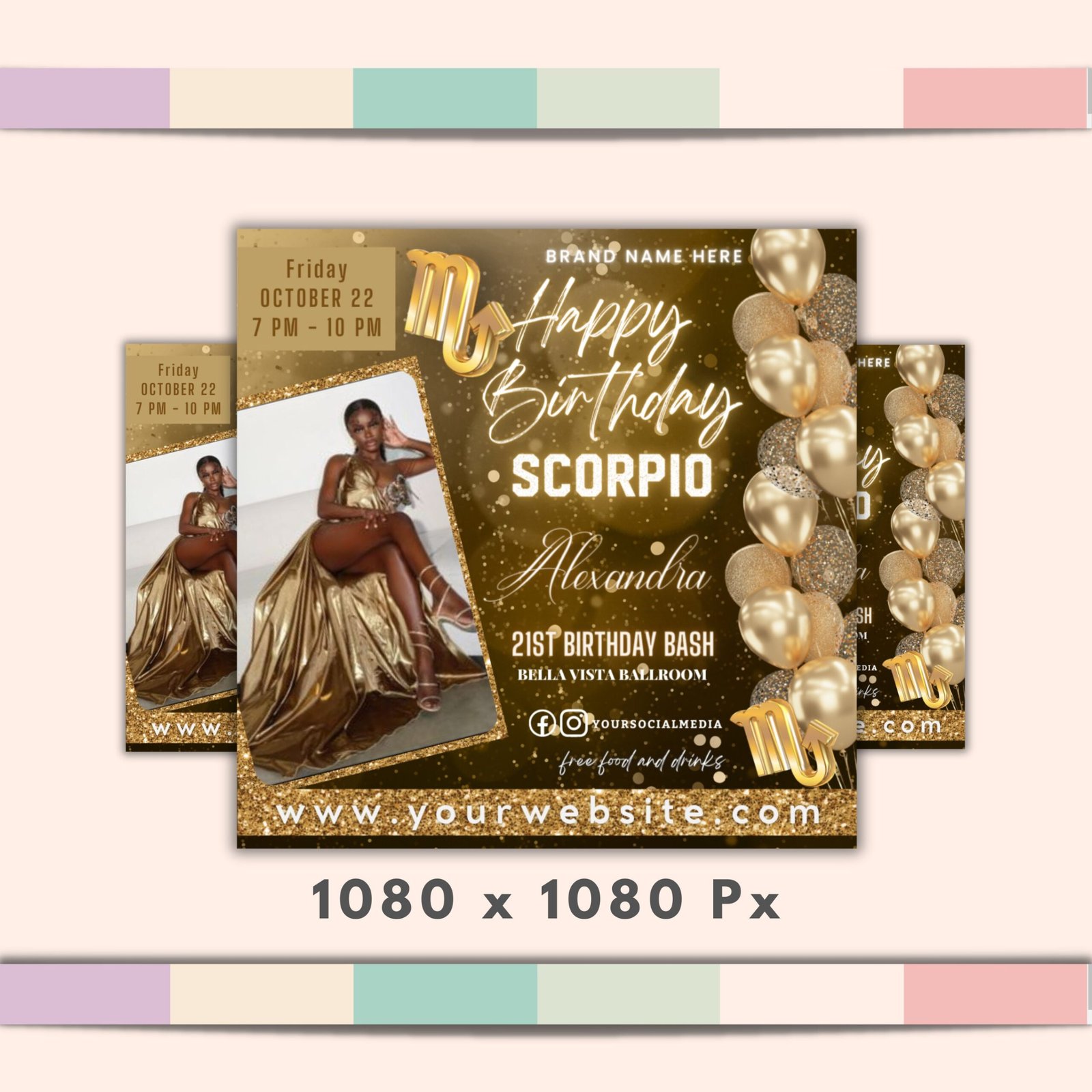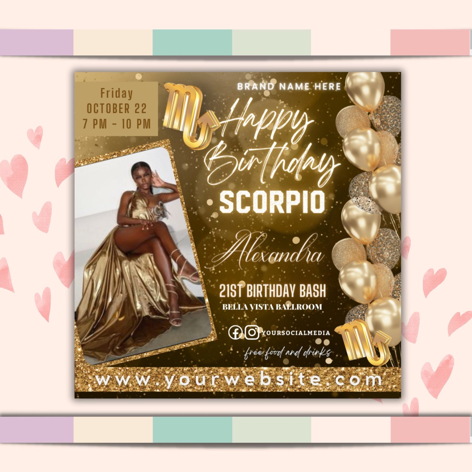 Scorpio Birthday Flyer, Scorpio Birthday Invitation, Birthday Flyer, Scorpio Bash Flyer, Scorpio Season, Birthday Flyer Template For Woman