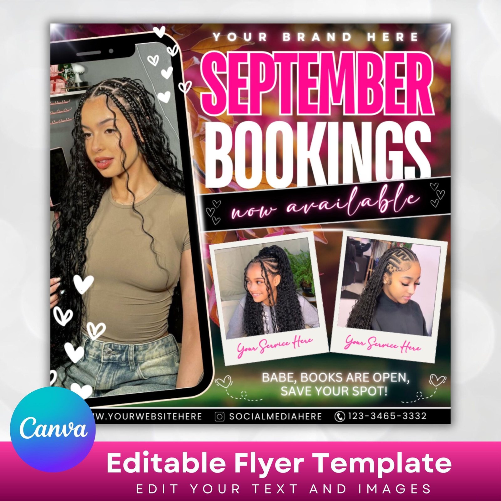 September Booking Flyer, Fall Makeup Deals, Appointment Flyer, Book Now Flyer, Hair, Nails, Makeup Lashes Braids Wigs, Canva Editable