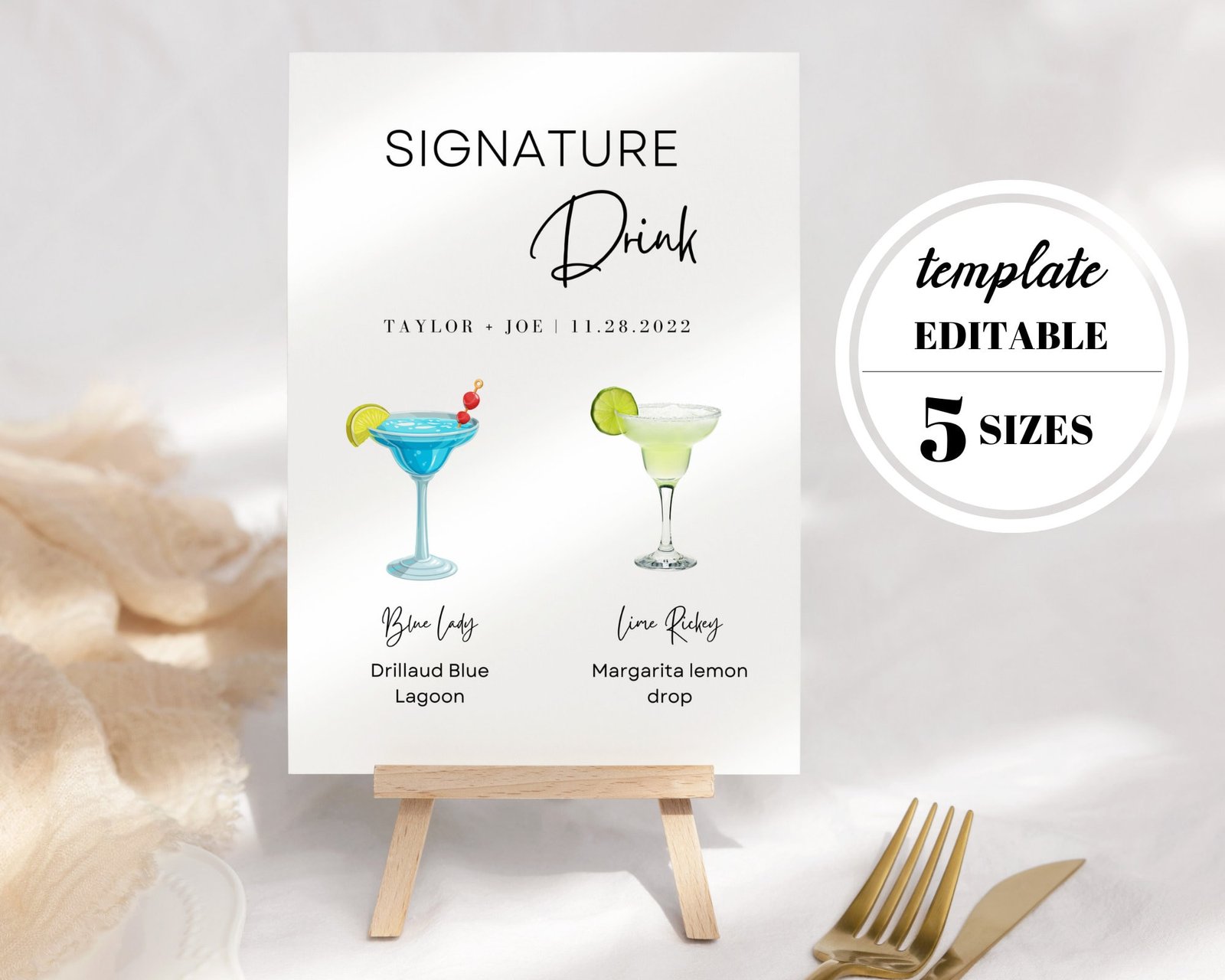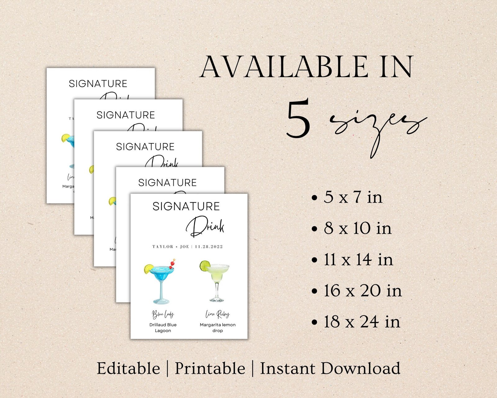 Signature drinks sign are use for events, parties and weddings. This digital product signature drink