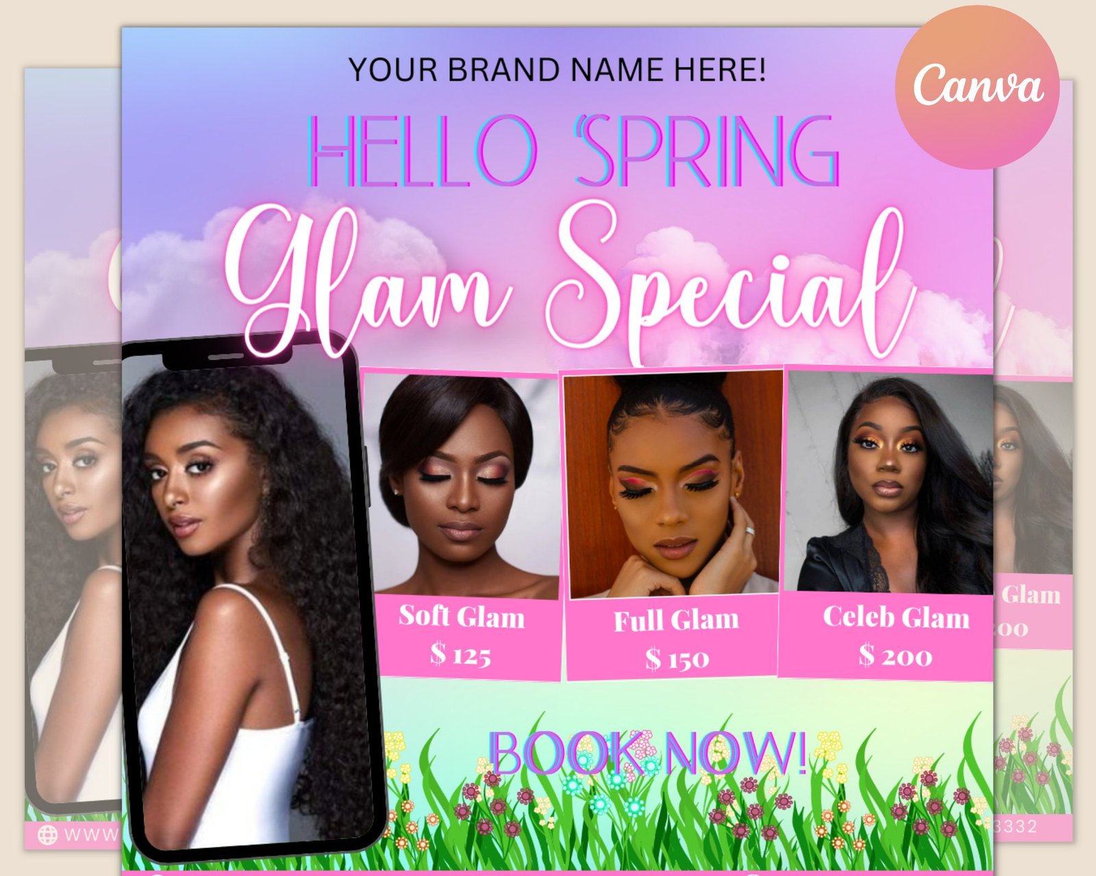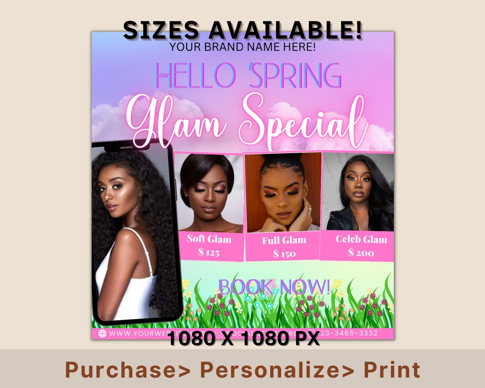 Spring Glam Specials Flyer,Spring Sale Flyer,Beauty Flyer,Makeup Flyer,Book Now Flyer,Makeup Booking Flyer,MUA Flyer,April Booking Flyer
