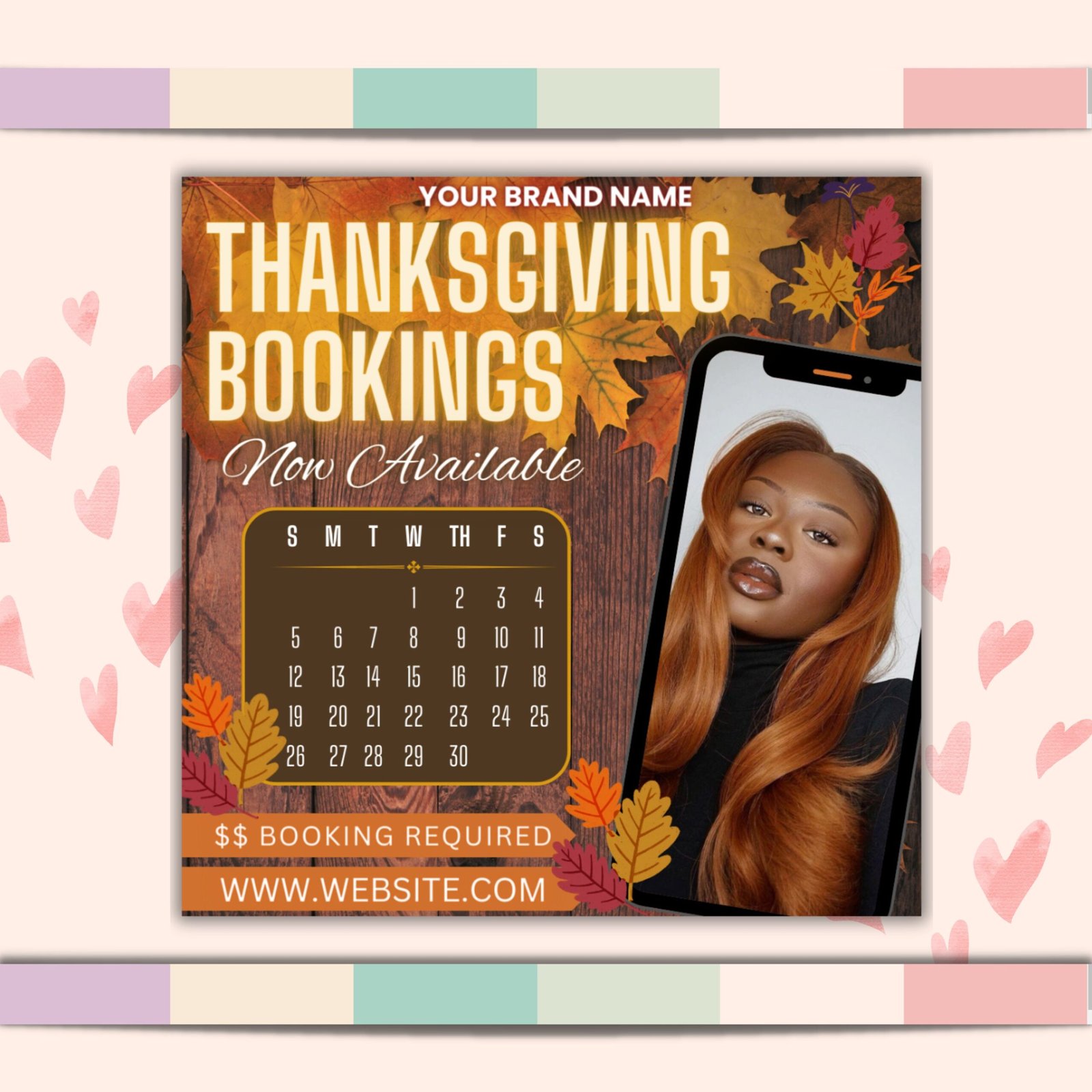 Thanksgiving Booking Flyer, November Booking Flyer, Fall Bookings Available, Hair Flyer, November Appointment Available, November Books Open