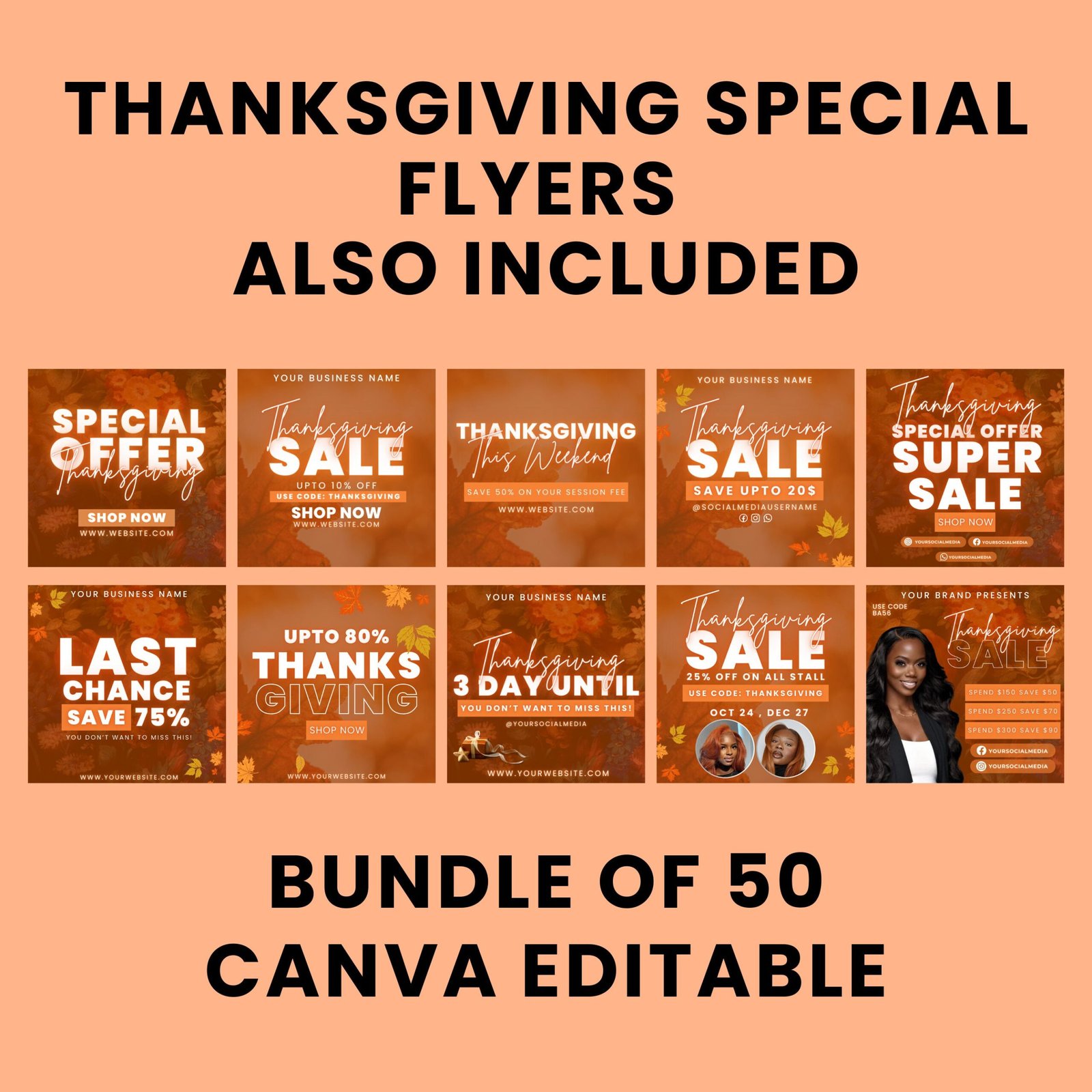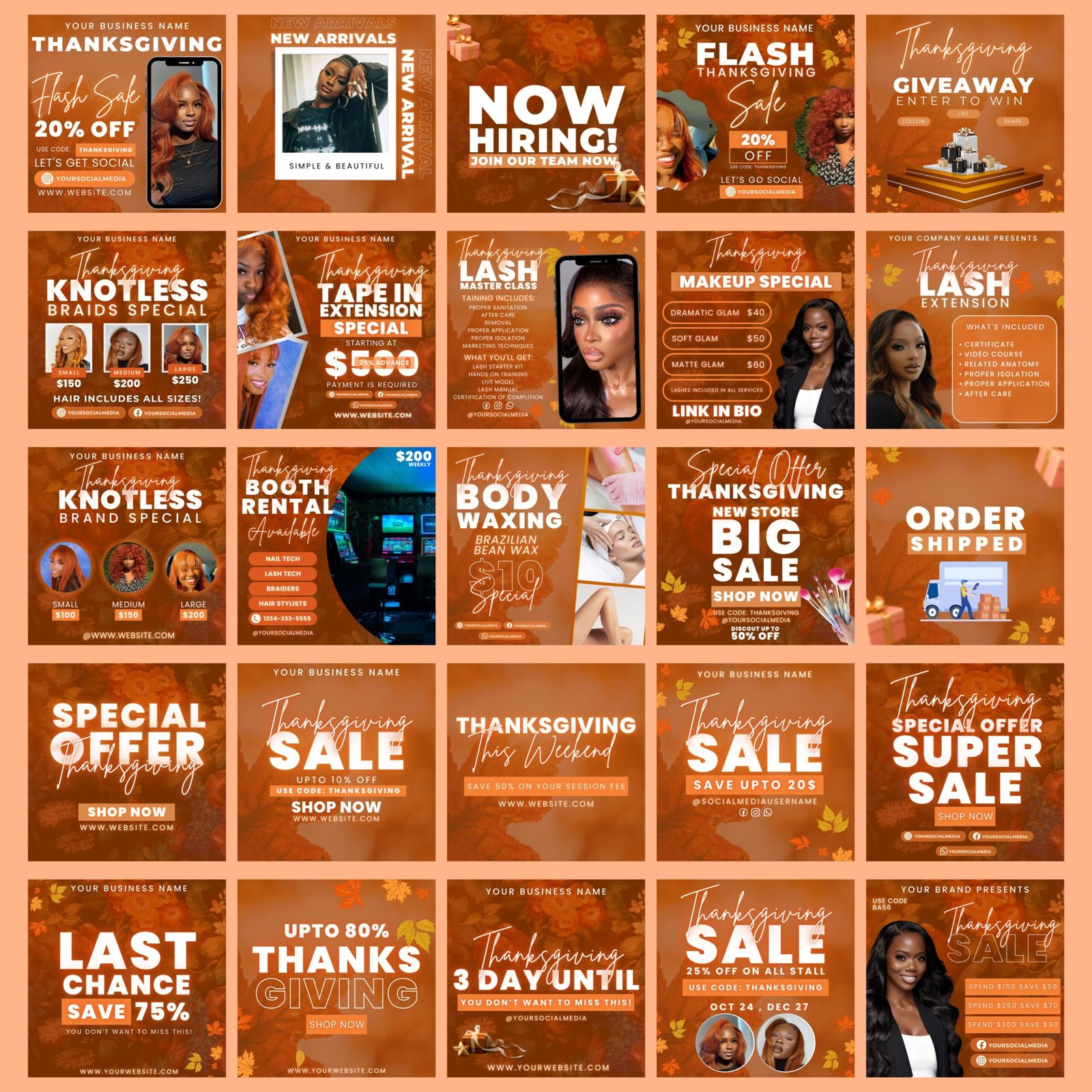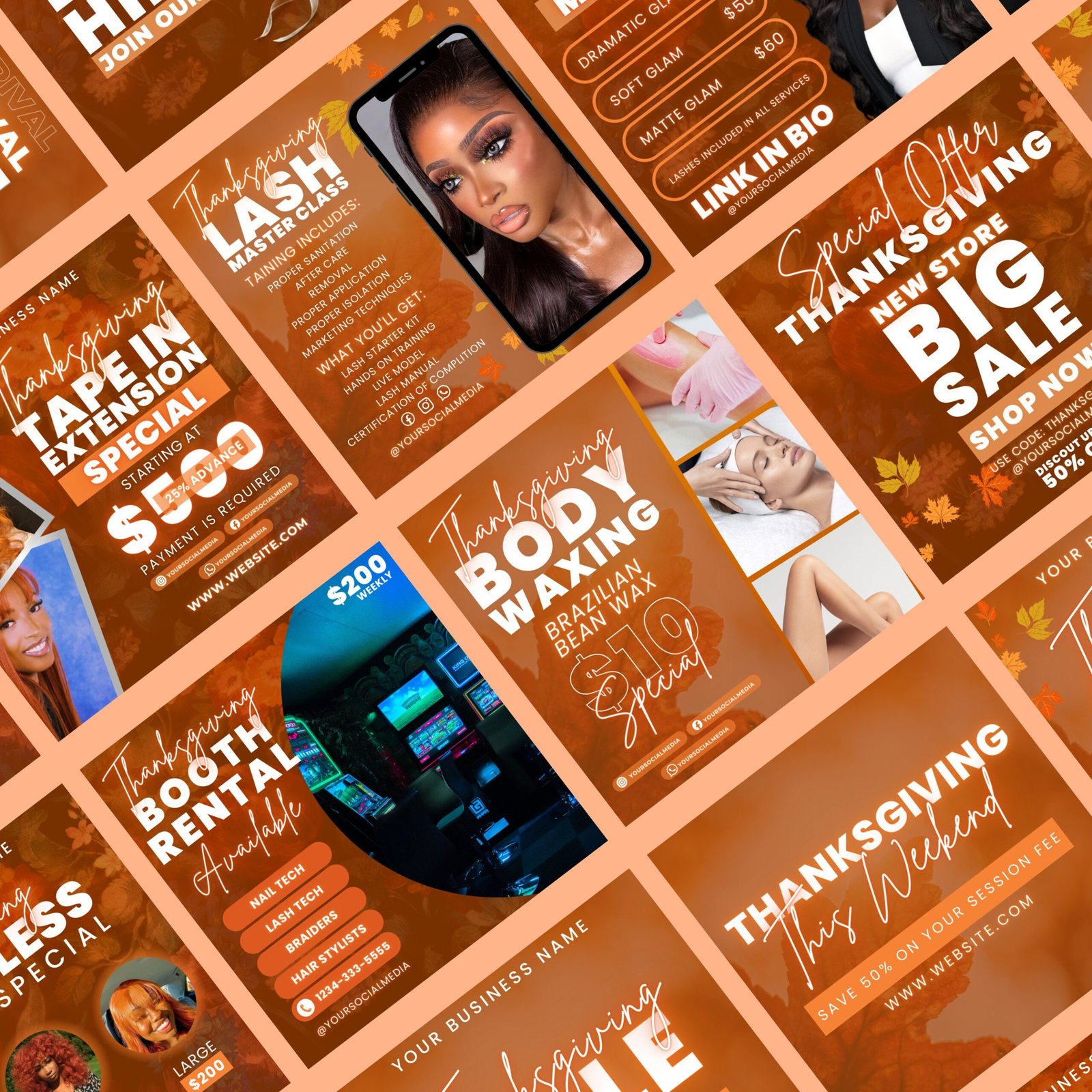 Thanksgiving Flyer Bundle, Fall Season Thanksgiving Sale Flyer, DIY Flyer Template Design, Hair Flyer, Book Now Flyer, Lash Flyer