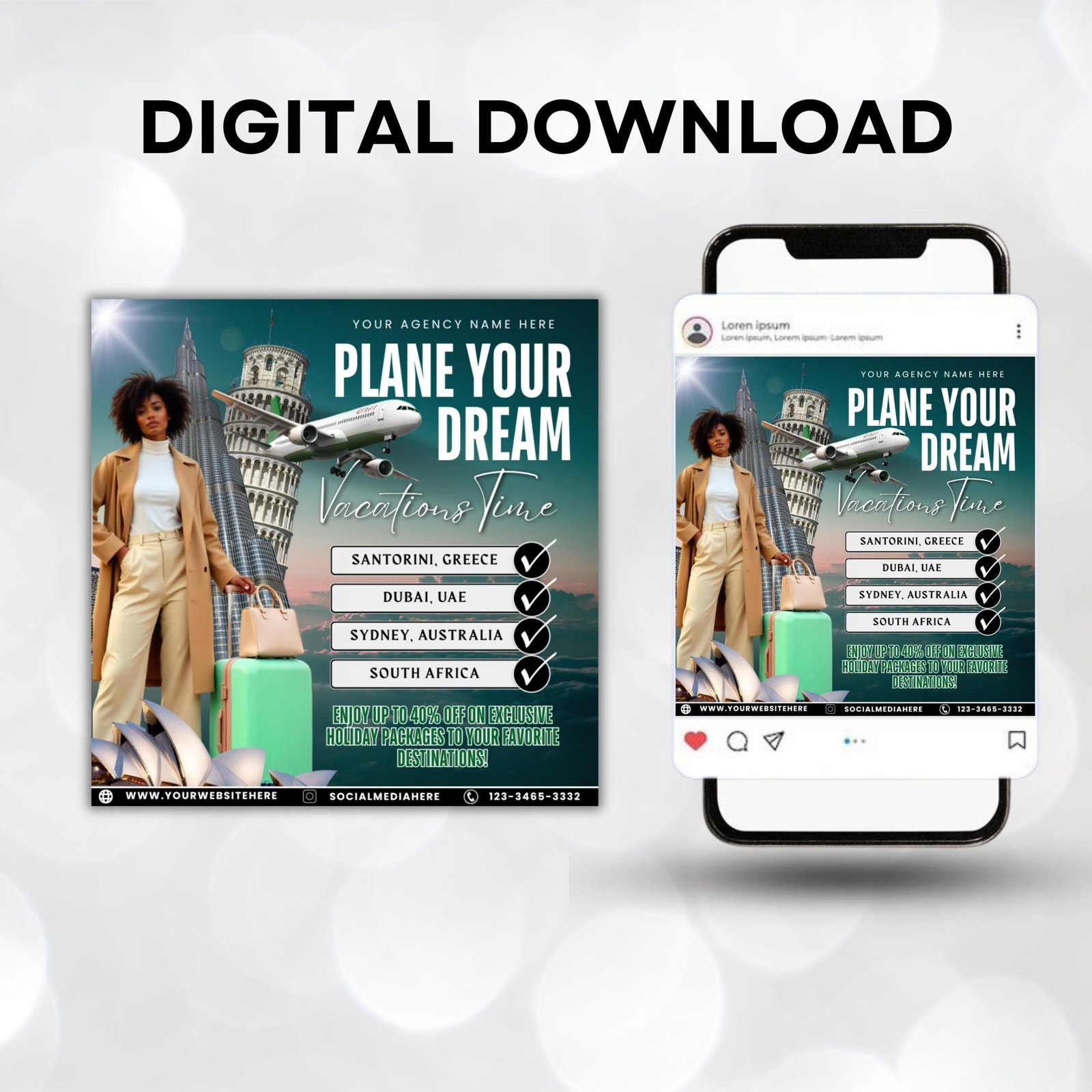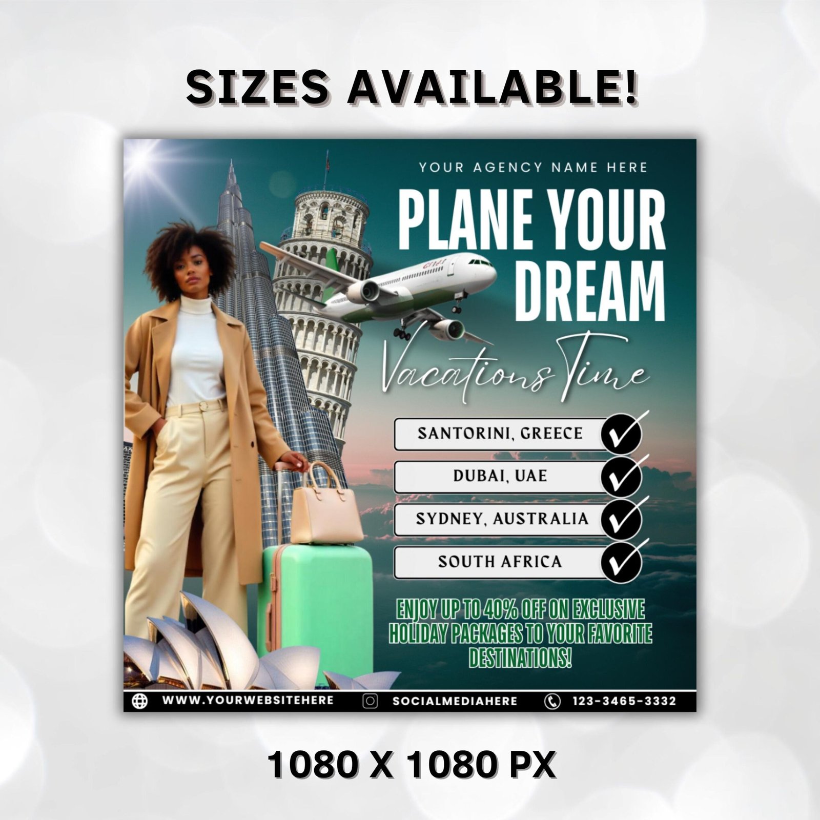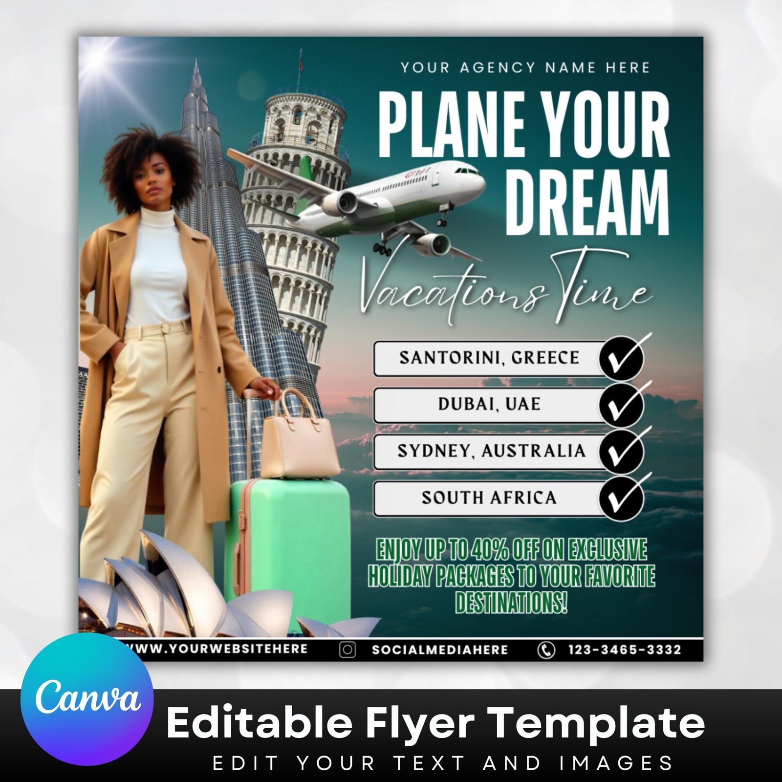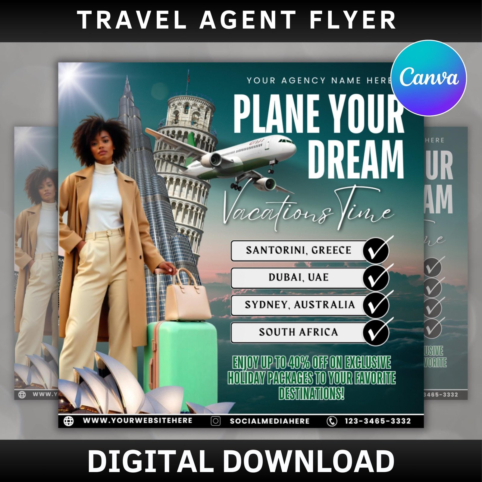 Travel Agent Flyer, DIY E-Flyer Template, Travel Flyer, Vacation Flyer, Travel Agency, Social Media Flyer, Canva Editable, Instant Download