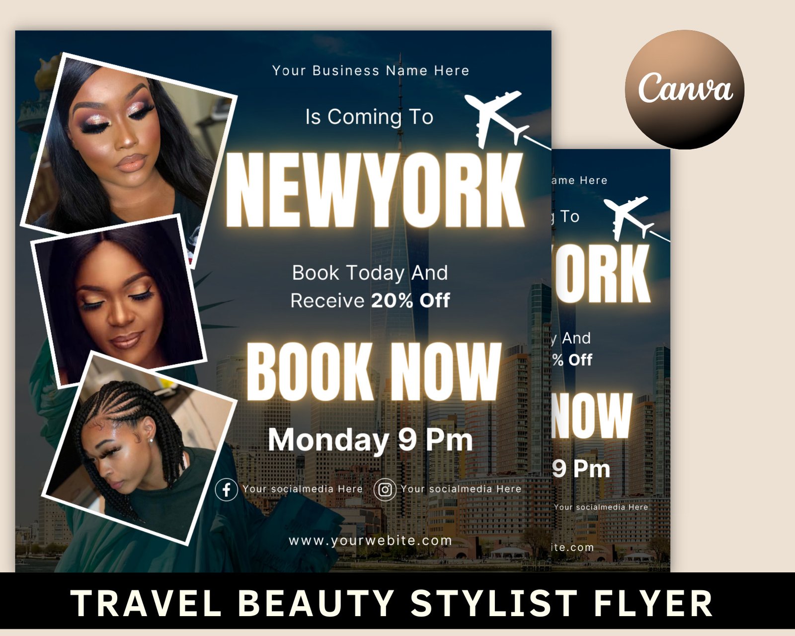 Travel Beauty Stylist Flyer, DIY Book Now Appointments Available Flyer, MUA Hair Lash Nails Makeup Social Media, Editable Canva Template