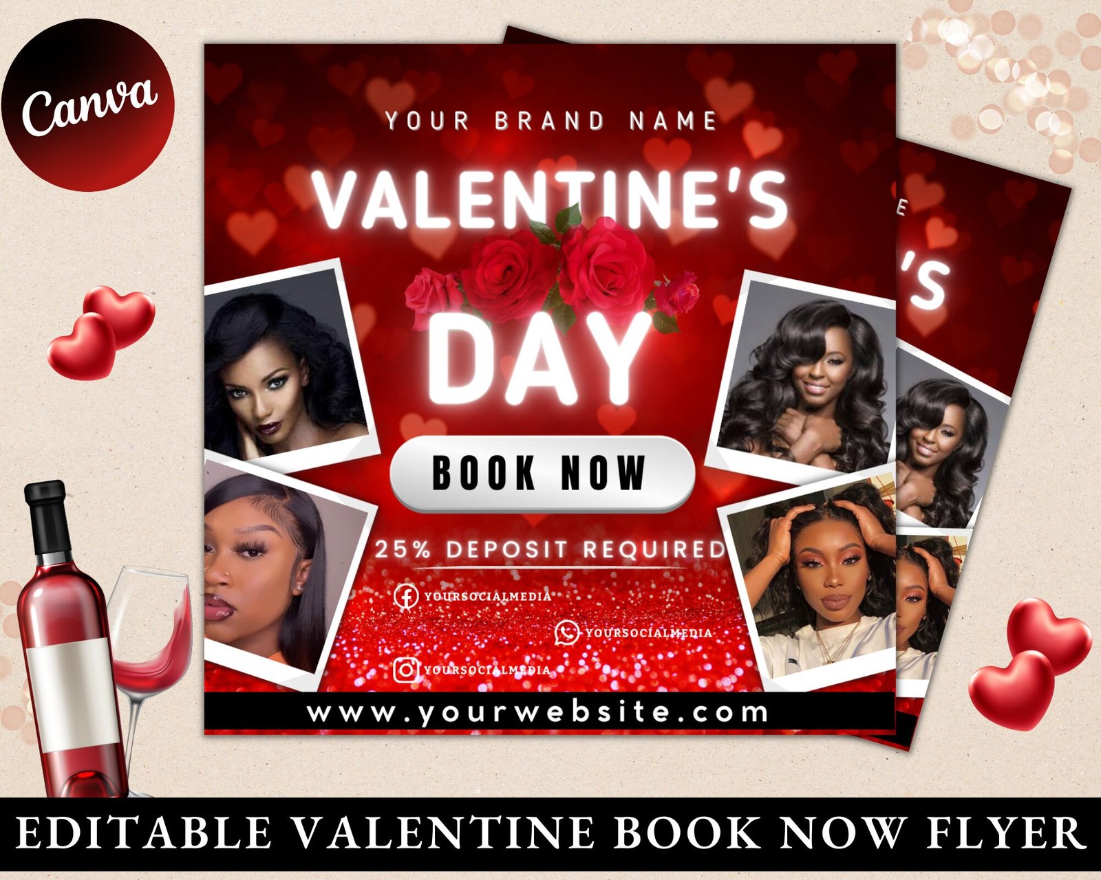 Valentine book now flyer, braid special, appointment flyer, book now flyer, hair flyer, valentines day wig sale flyer