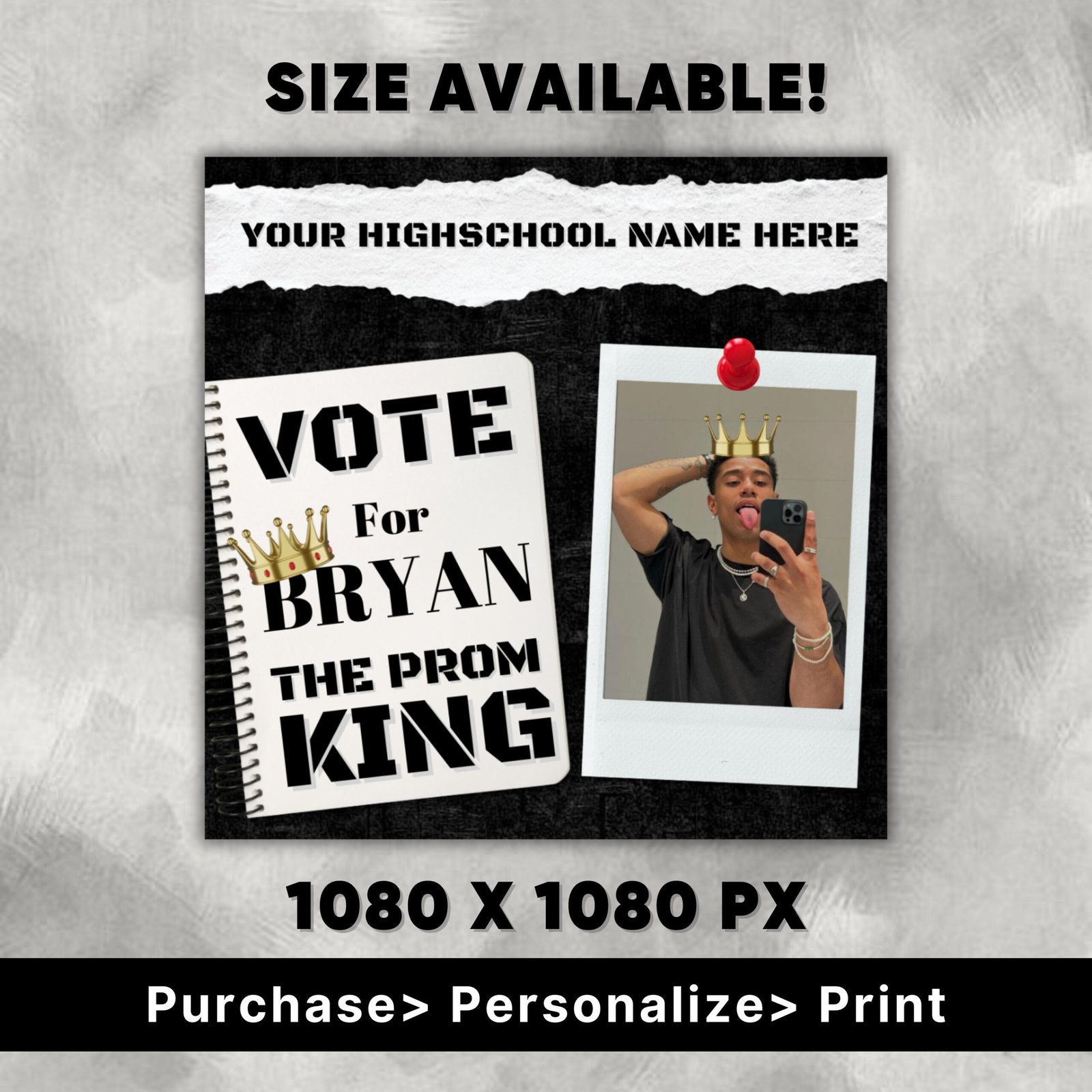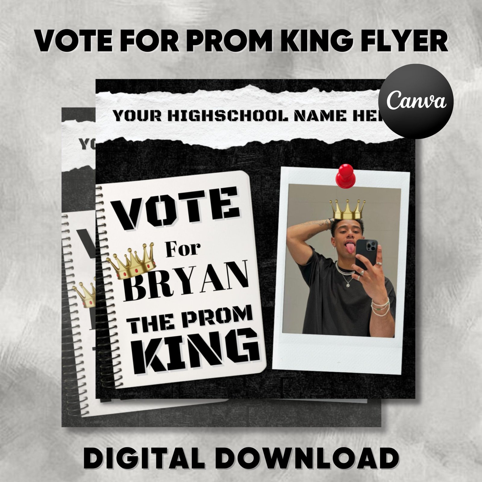 👑 Step into the spotlight with our handcrafted “Prom King Flyer” – the ultimate announcement for your school’s crowning event! 👑